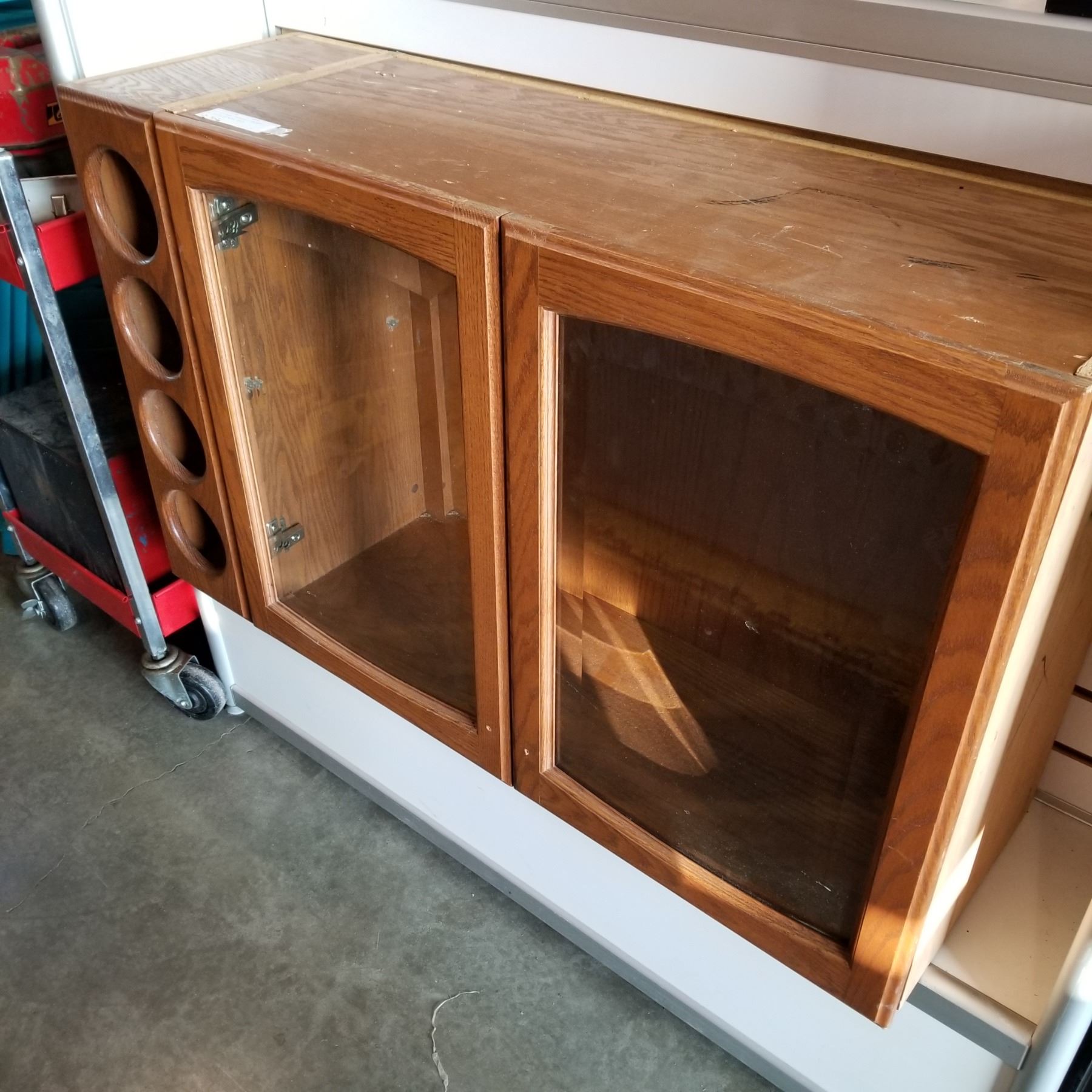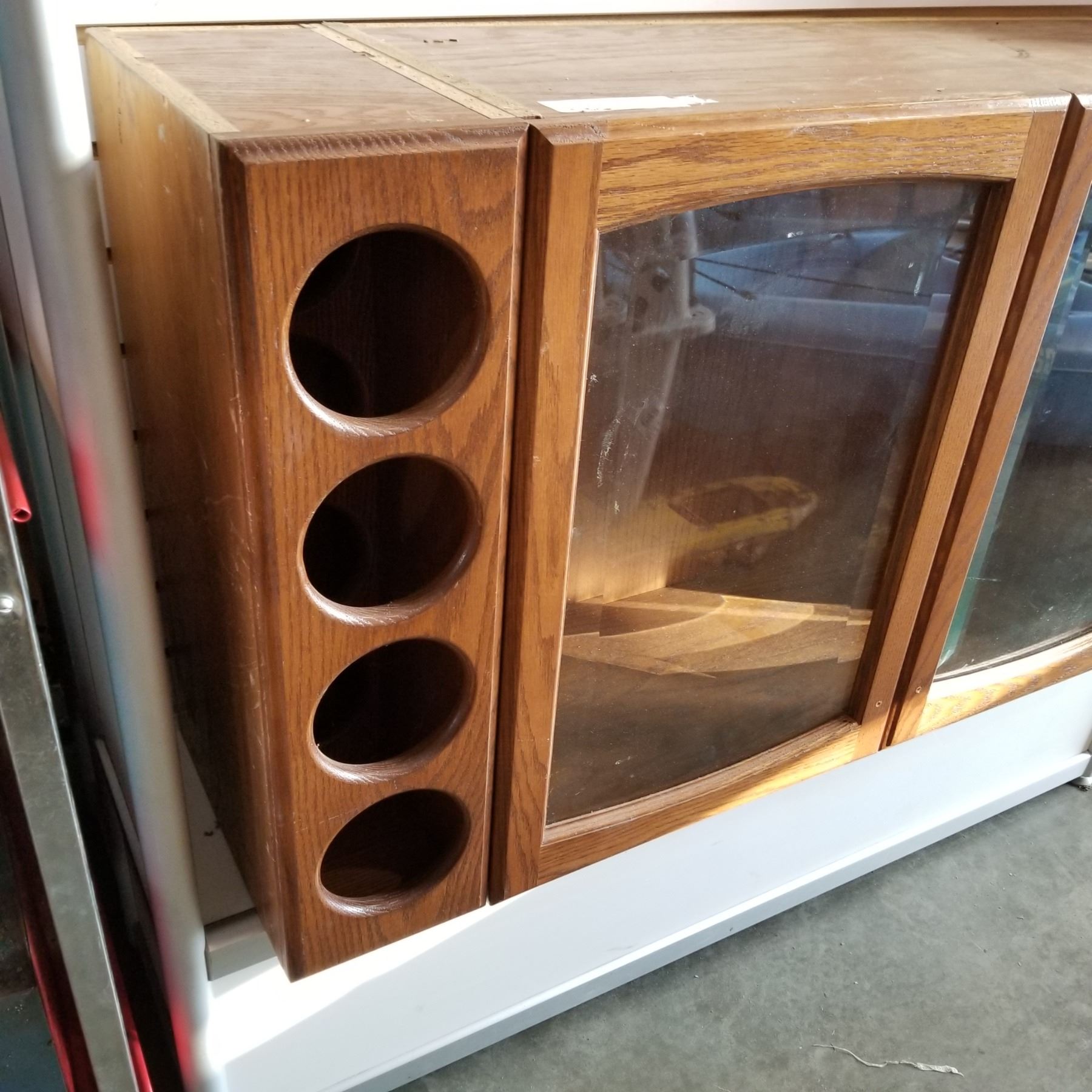 OAK KITCHEN OVERHEAD CABINET W/ BUILT IN WINE RACK