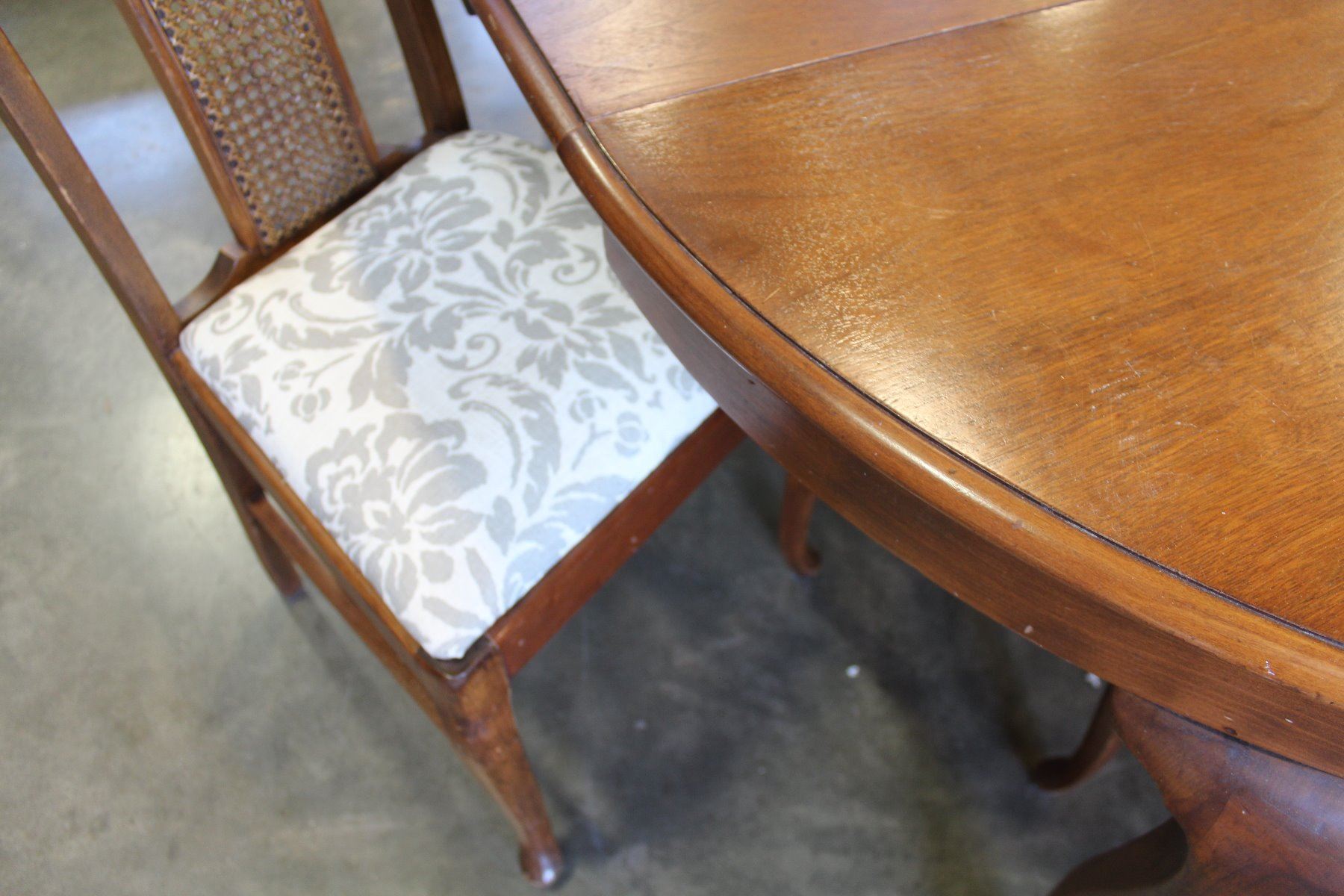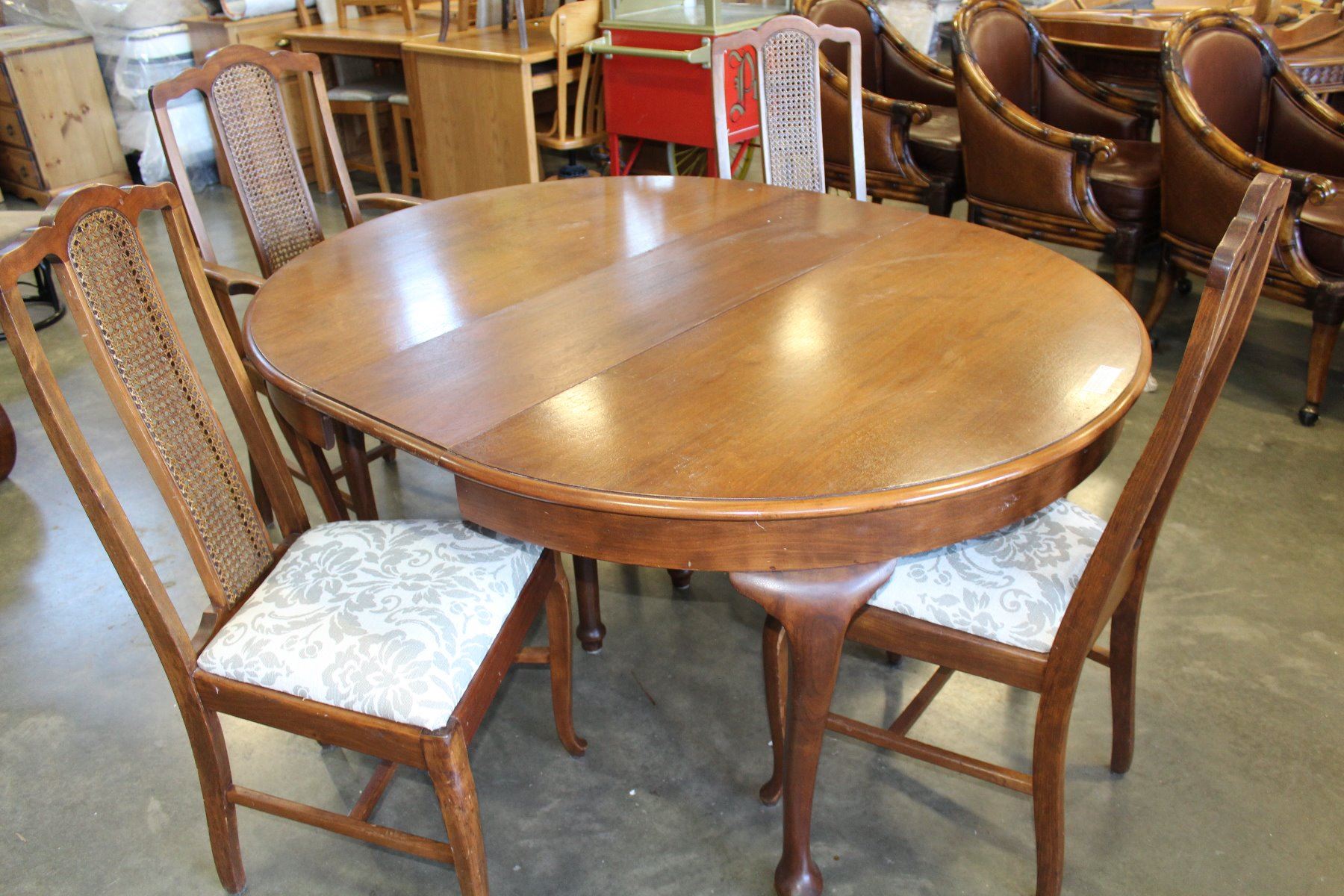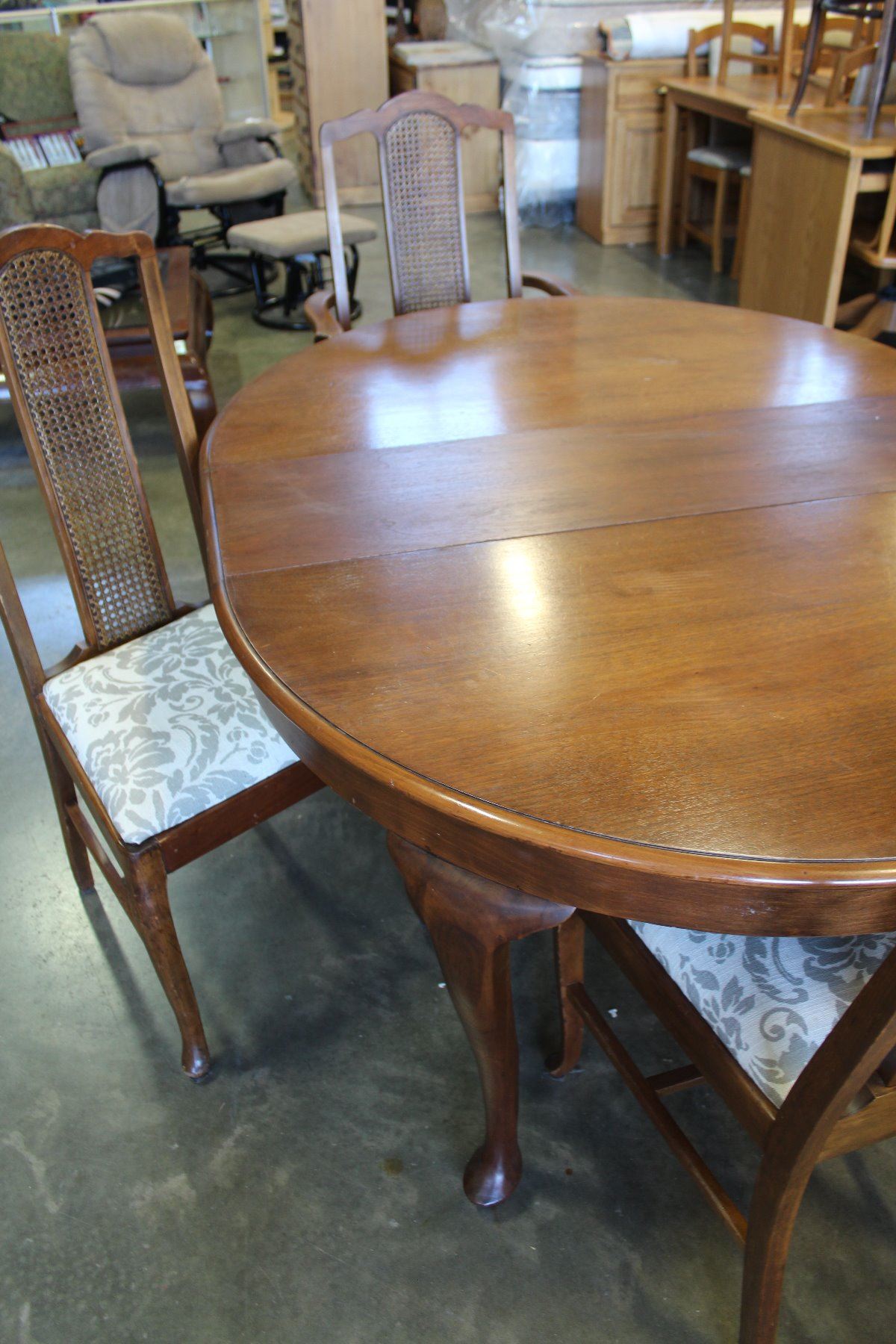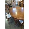 OAK QUEEN ANNE STYLE ROUND DINING TABLE AND FOUR CHAIRS