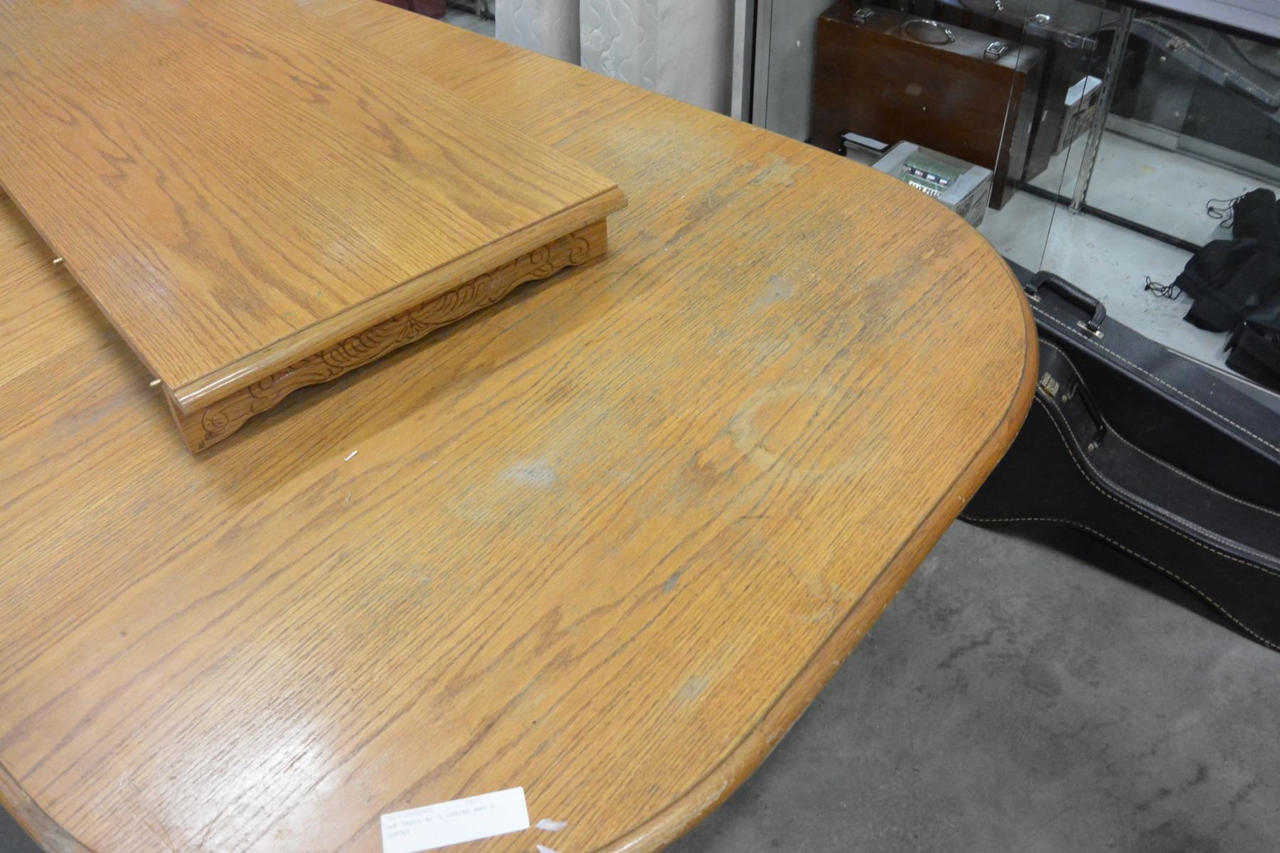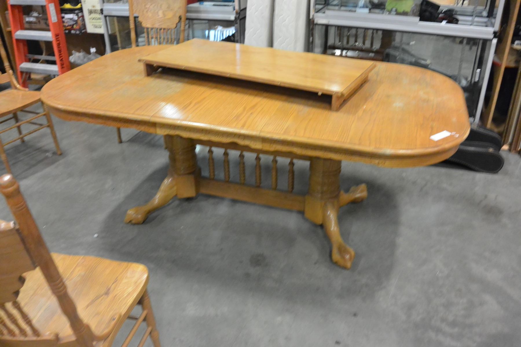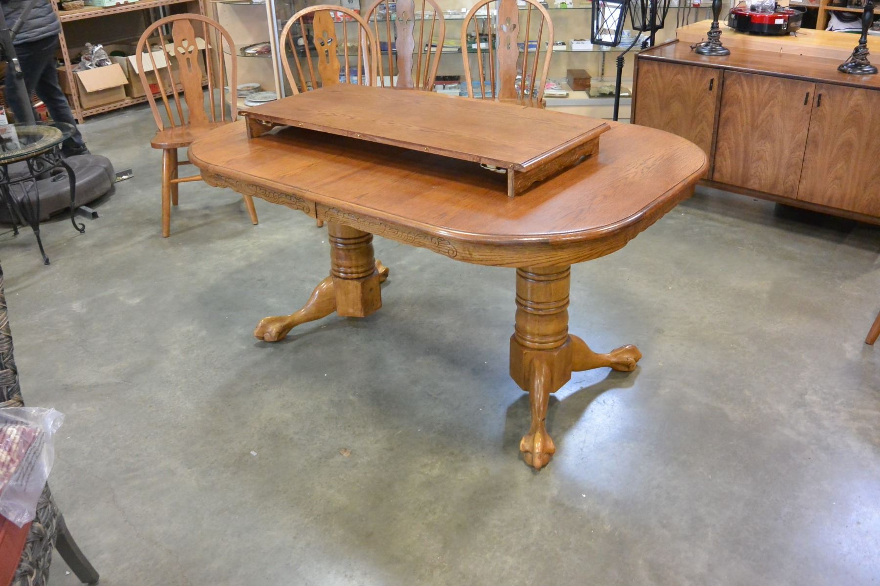 OAK TABLE W/ 5 CHAIRS AND 2 LEAVES