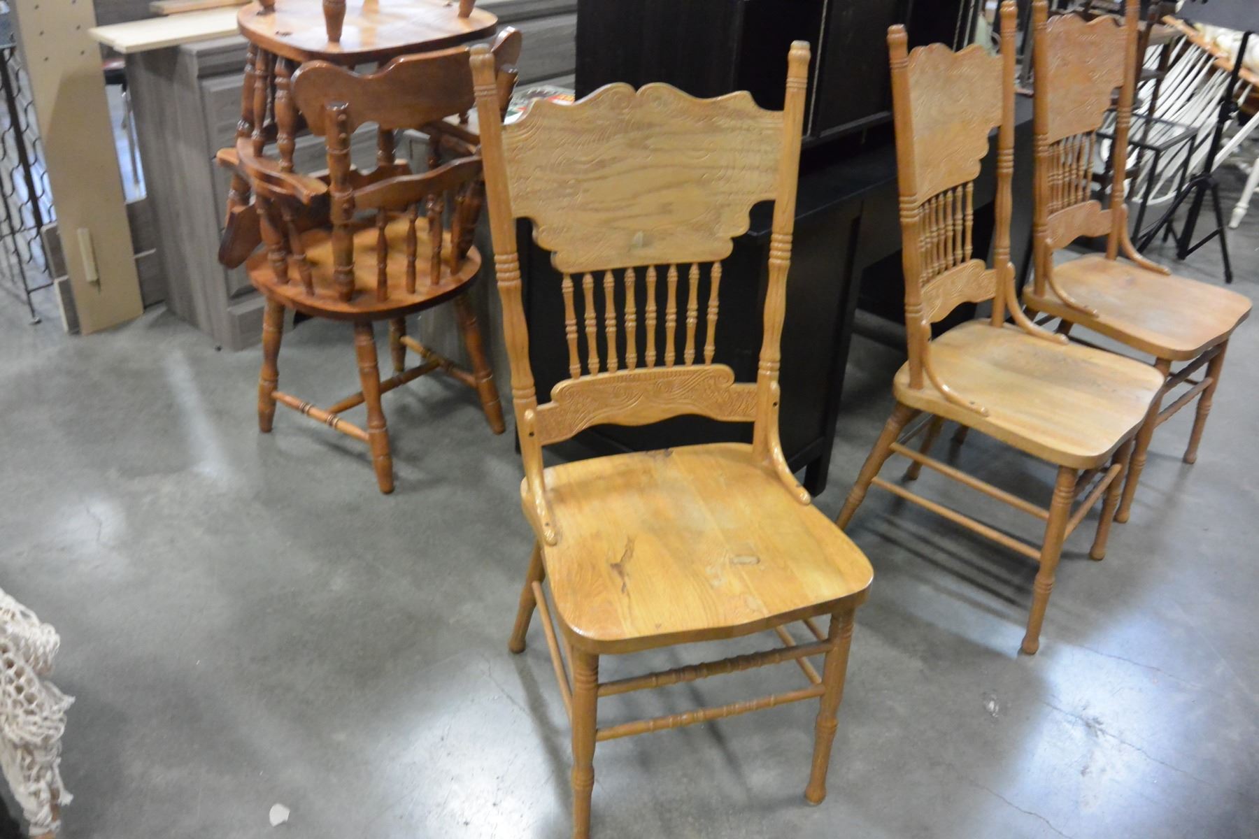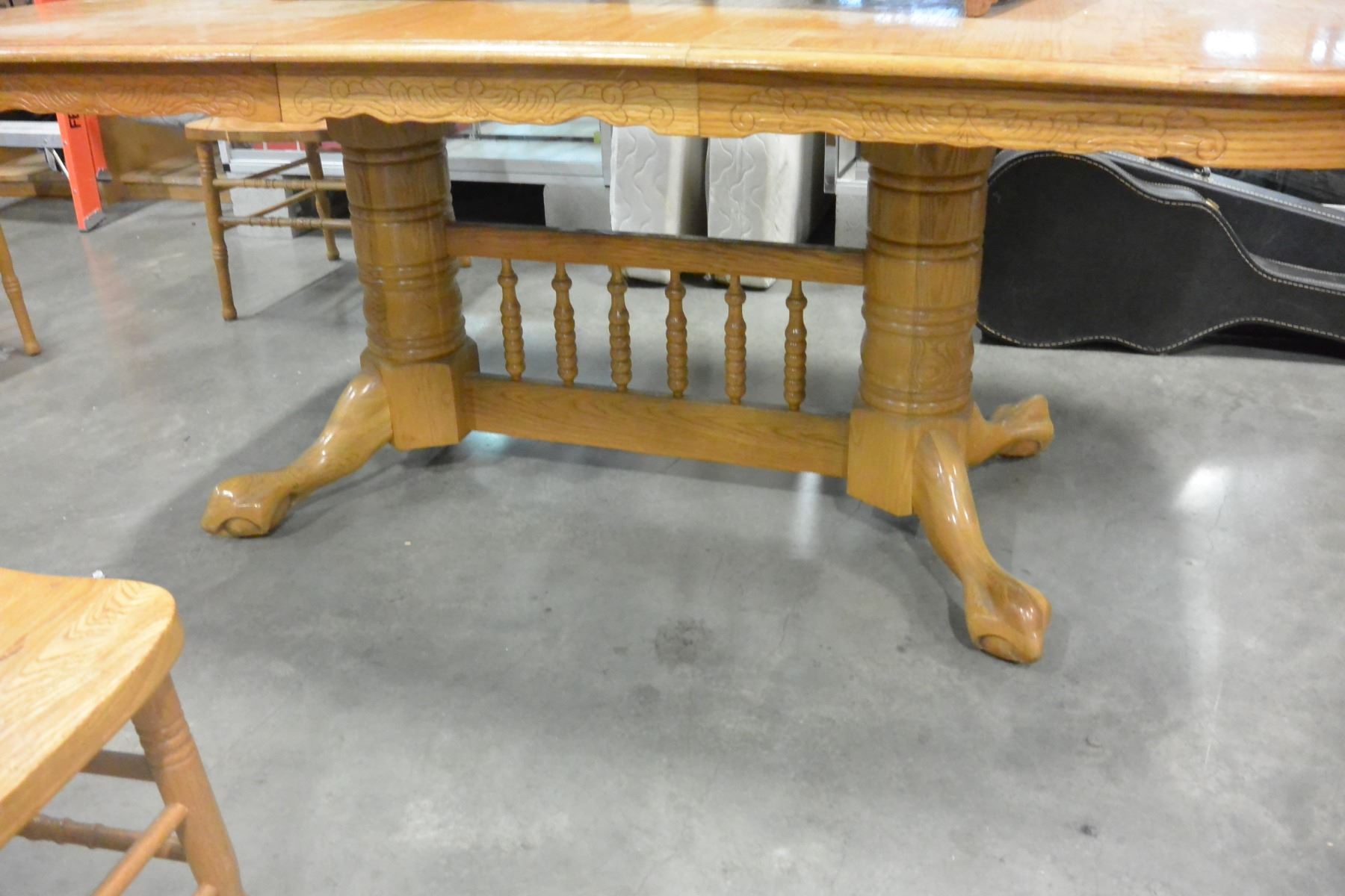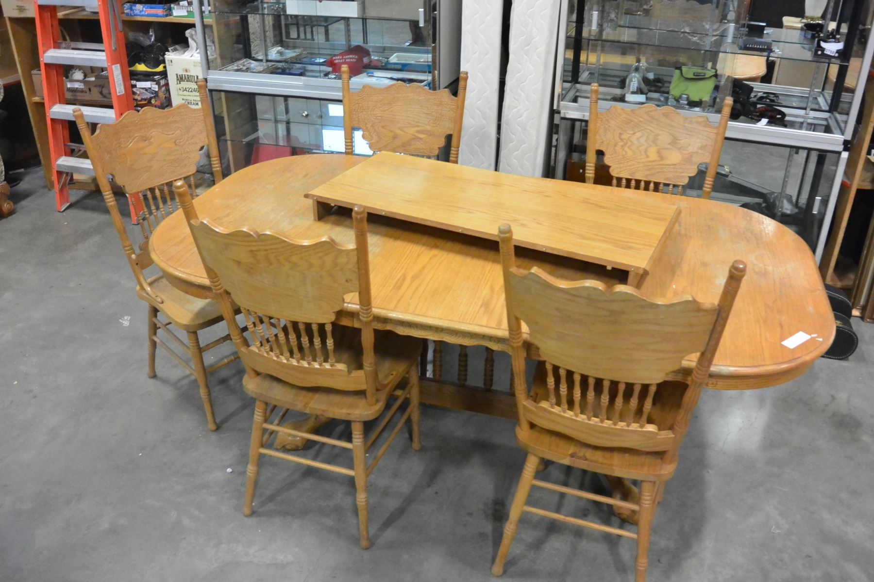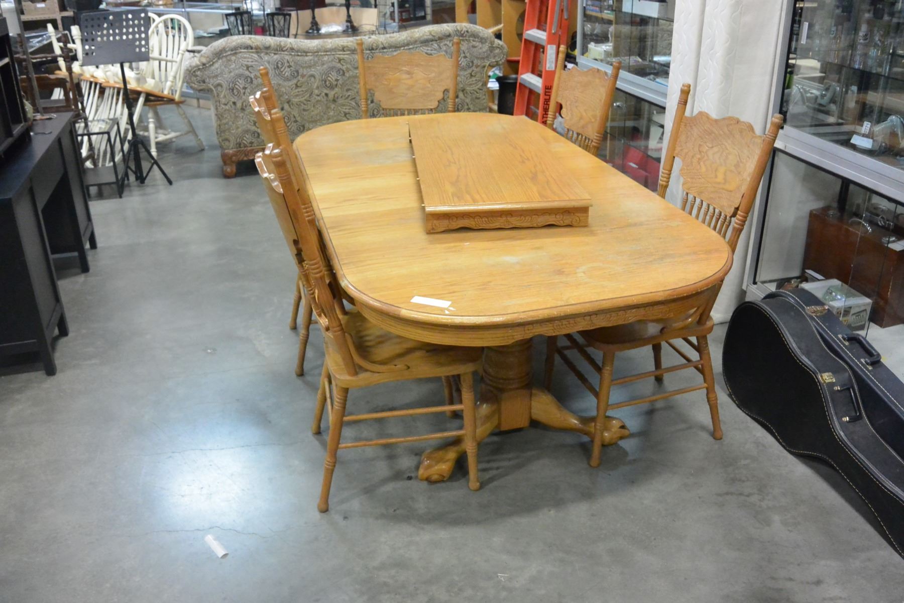 OAK TABLE W/ 5 CHAIRS AND 2 LEAVES