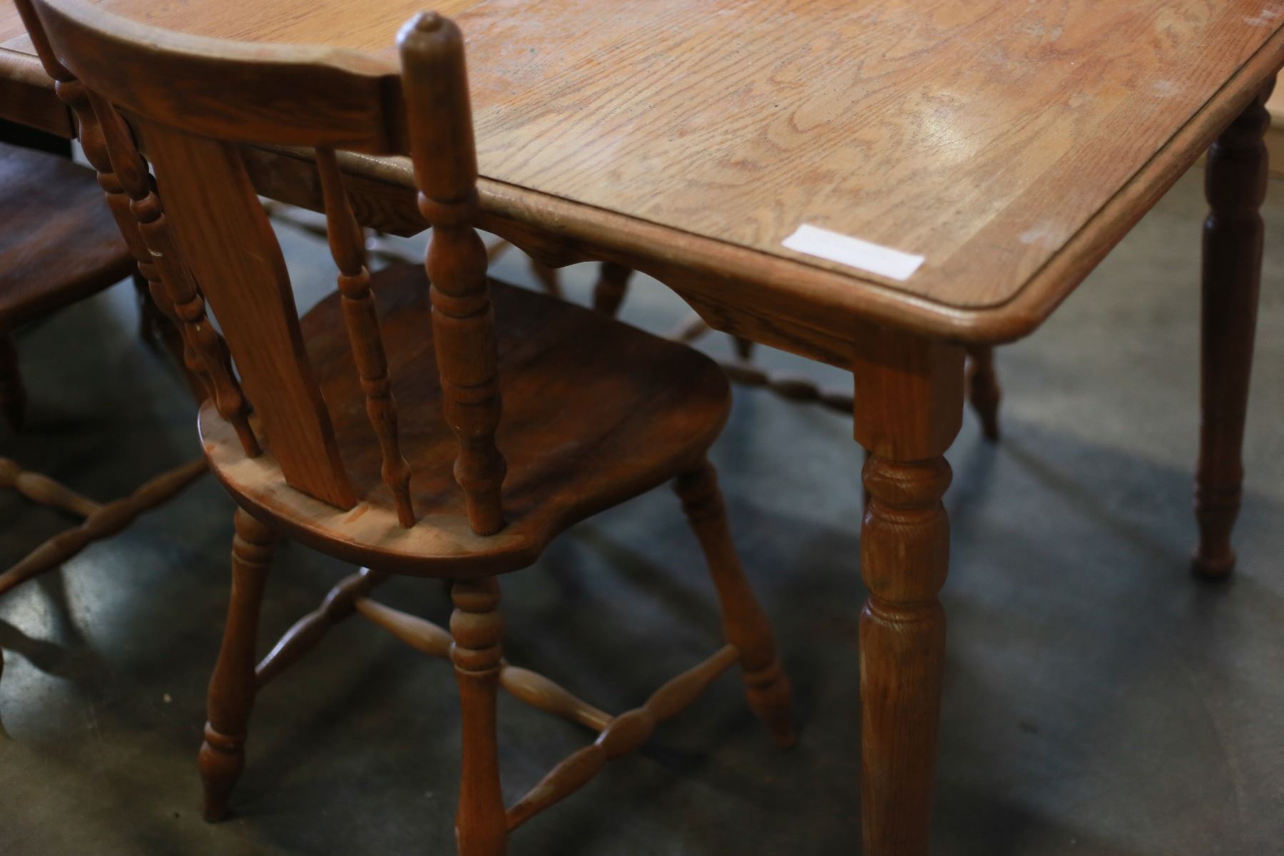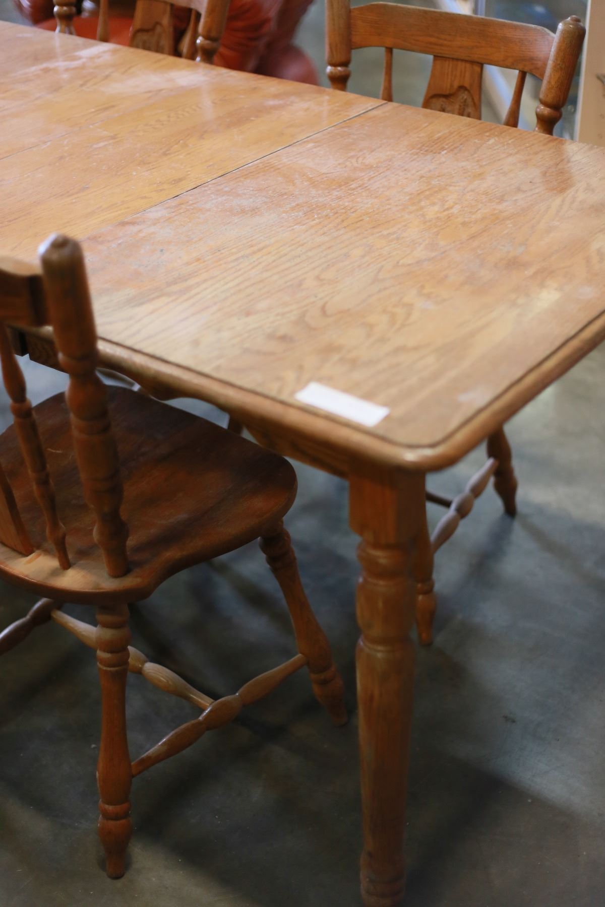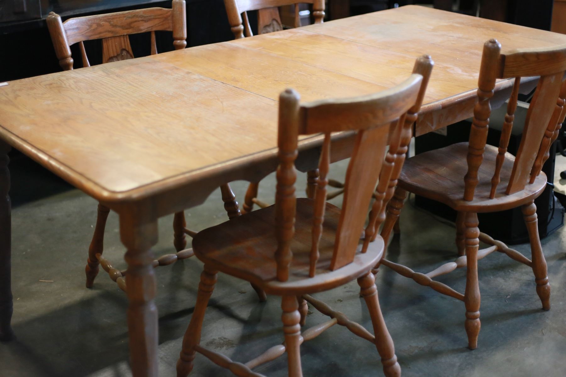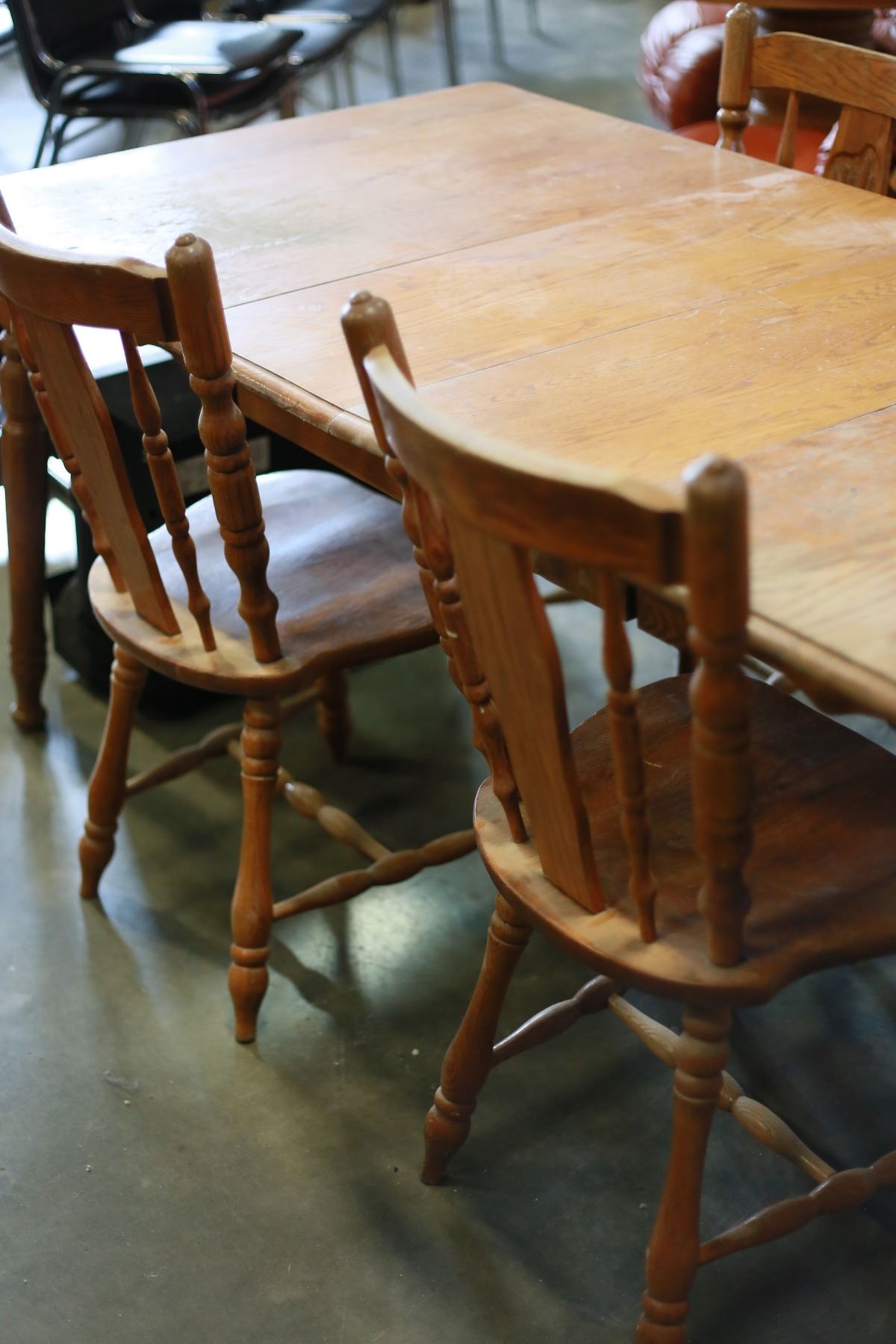 OAK TABLE WITH 2 LEAFS AND 4 CHAIRS