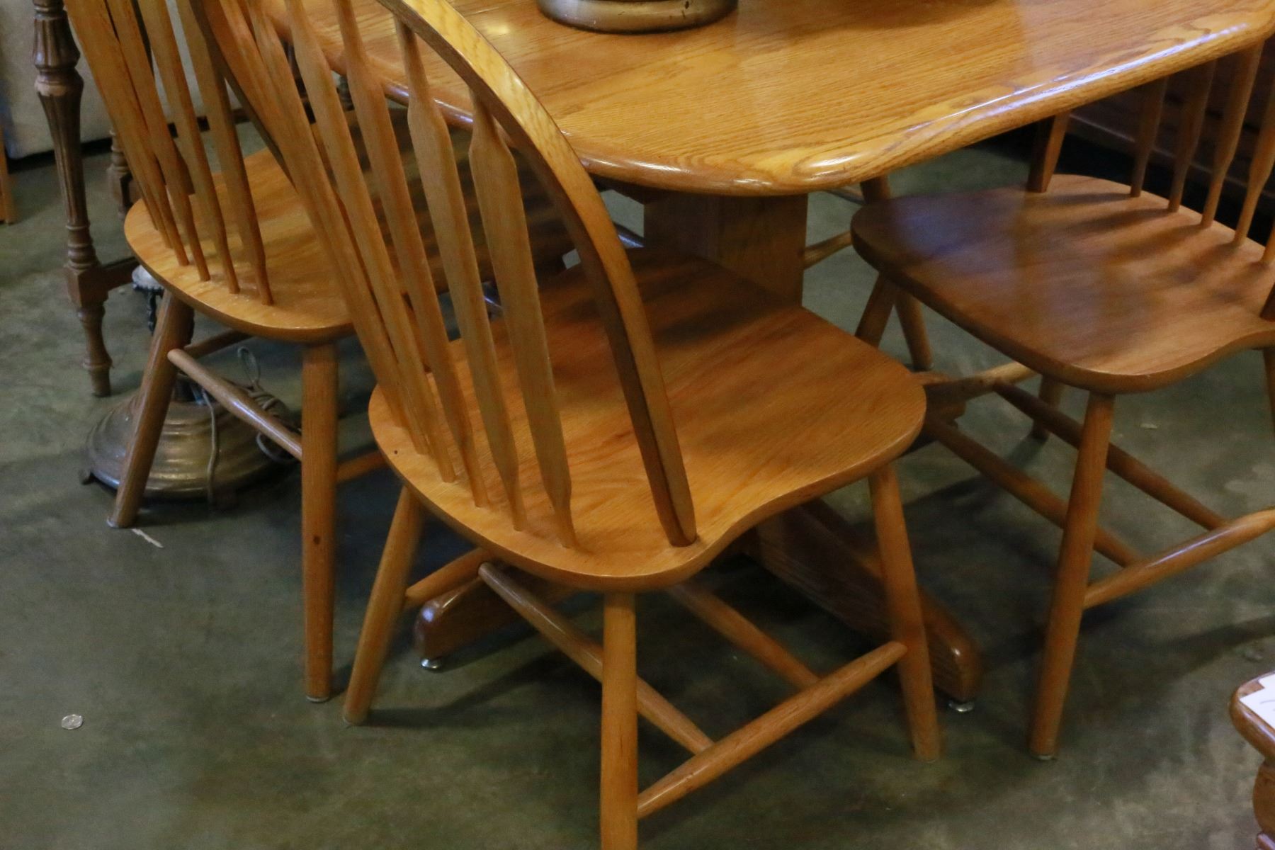 OAK TABLE WITH LEAF AND 4 CHAIRS
