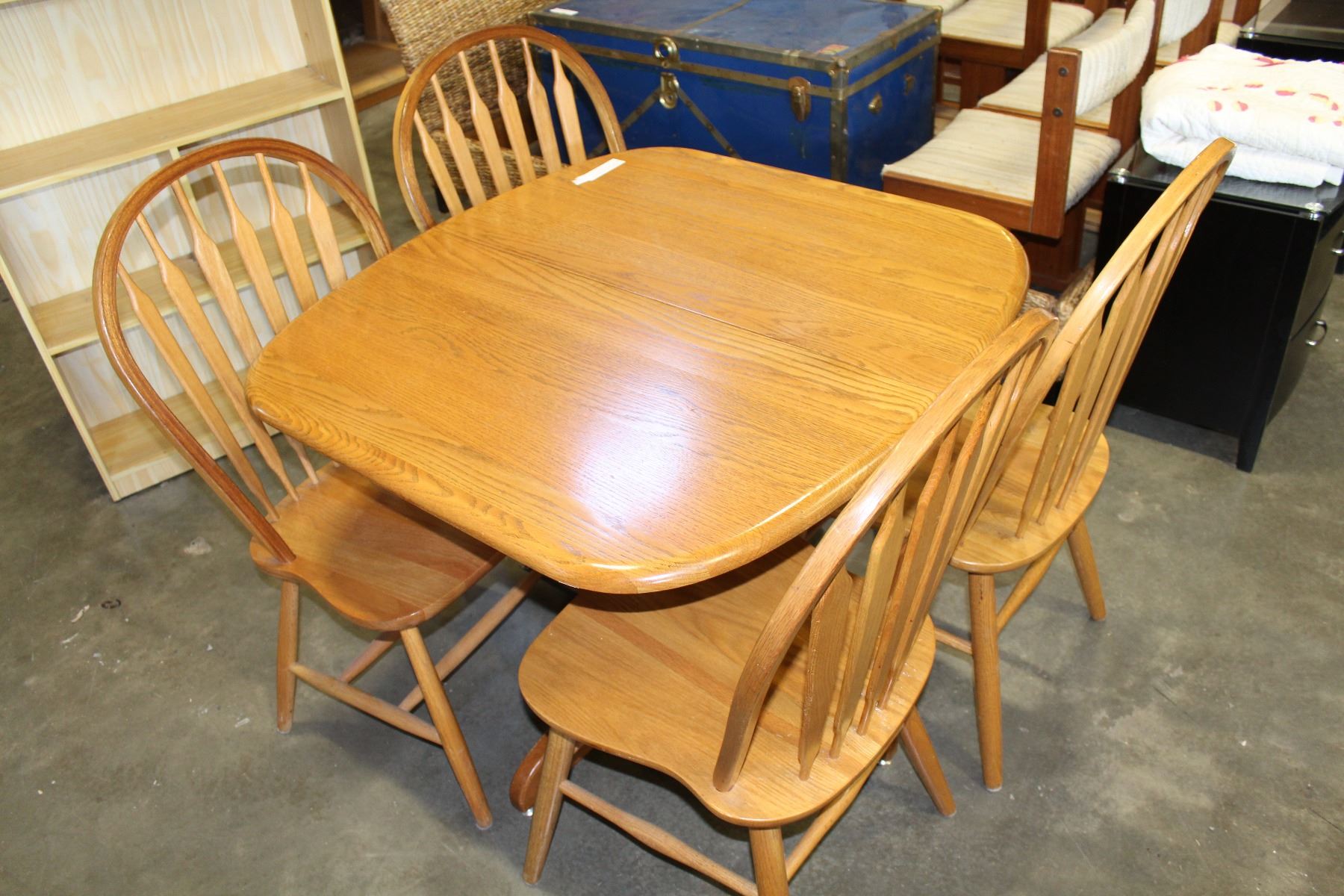 OAK TABLE WITH LEAF AND 4 CHAIRS