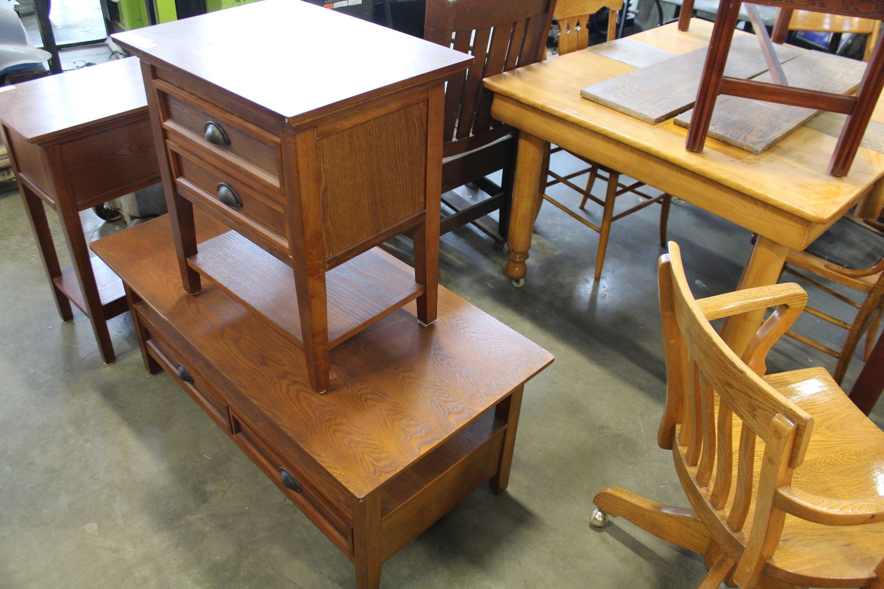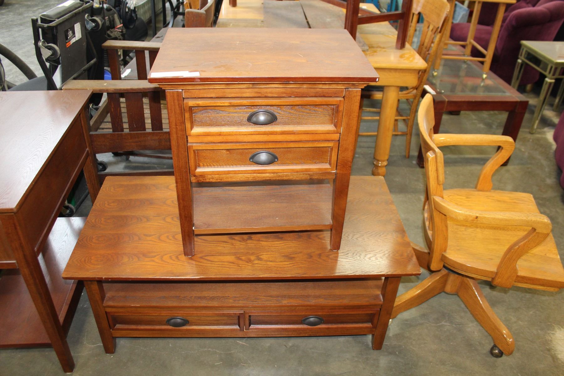 OAK TWO DRAWER COFFEE TABLE AND ENDTABLE