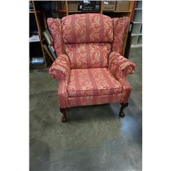 CARVED CLAW FOOT WING BACK ARM CHAIR