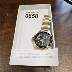 MENS ROLEX SUBMARINER SILVER AND GOLD WATCH UNAUTHENTICATED658 - MENS ROLEX SUBMARINER SILVER AND GOLD WATCH UNAUTHENTICATED