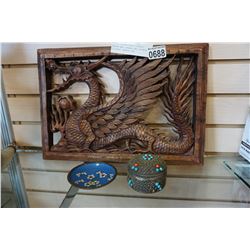 HIGHLY CARVED EARLY CHINESE DRAGON WALL HANGER AND CHINESE FILAGREE JEWELRY BOX
