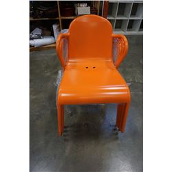 4 ORANGE METAL STACKING CHAIRS320 - 4 ORANGE METAL STACKING CHAIRS