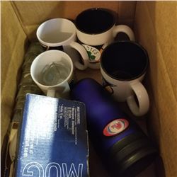 LOT OF NEW LICENSED NHL AND NBA MUGS, SHOTGLASSES, TRAVEL MUG, RETAIL $175
