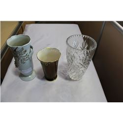 CRYSTAL VASE CARLTON WARE VASE AND POTTERY VASE