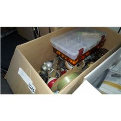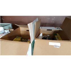 BOX OF FISHING REELS, LINE, AND ACCESSORIES