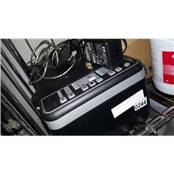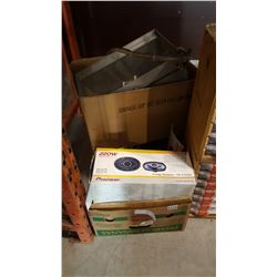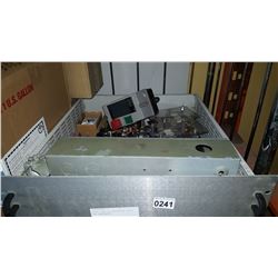 2 TOTES OF ELECTRONICS AND THULE SKI RACK