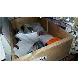 BOX OF TOOLS AND SAWBLADES AND ROTARY TOOLS