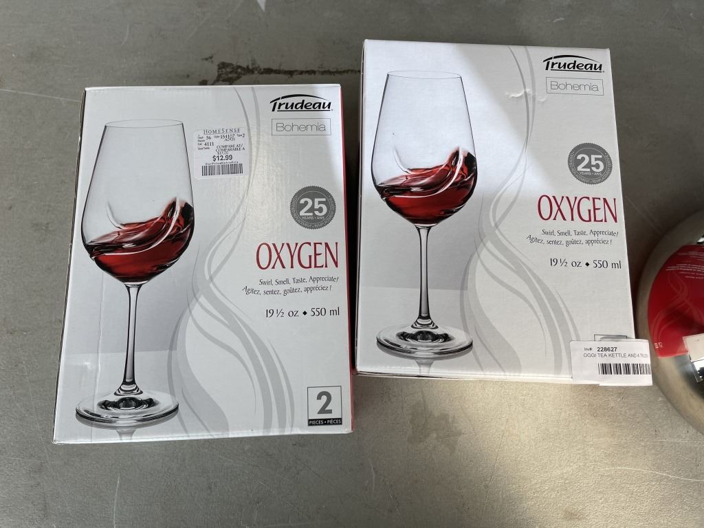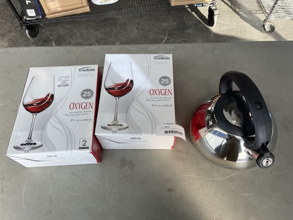 OGGI TEA KETTLE AND 4 TRUDEAU GOBLETS