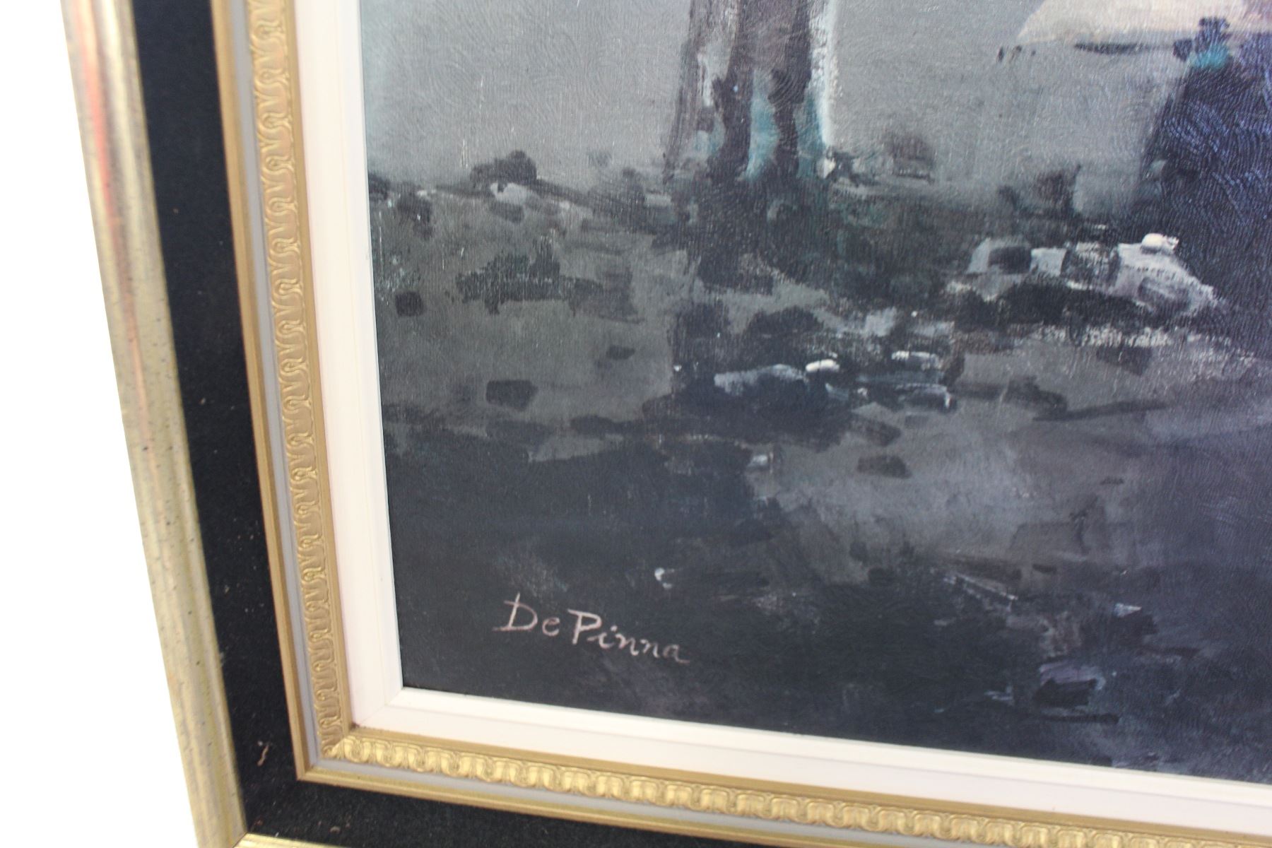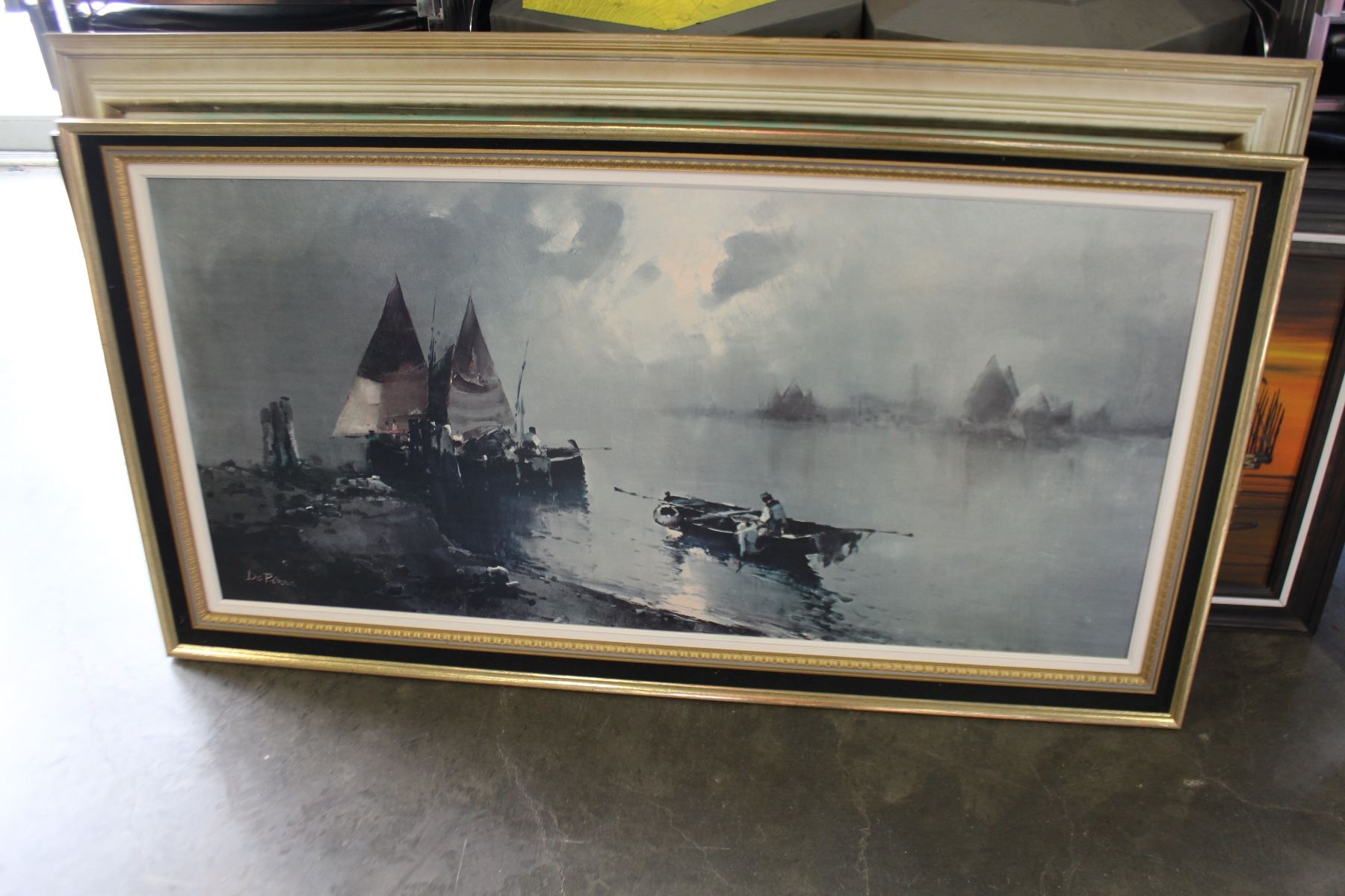 OIL ON CANVAS IN FRAME EASTERN BOAT SCENE