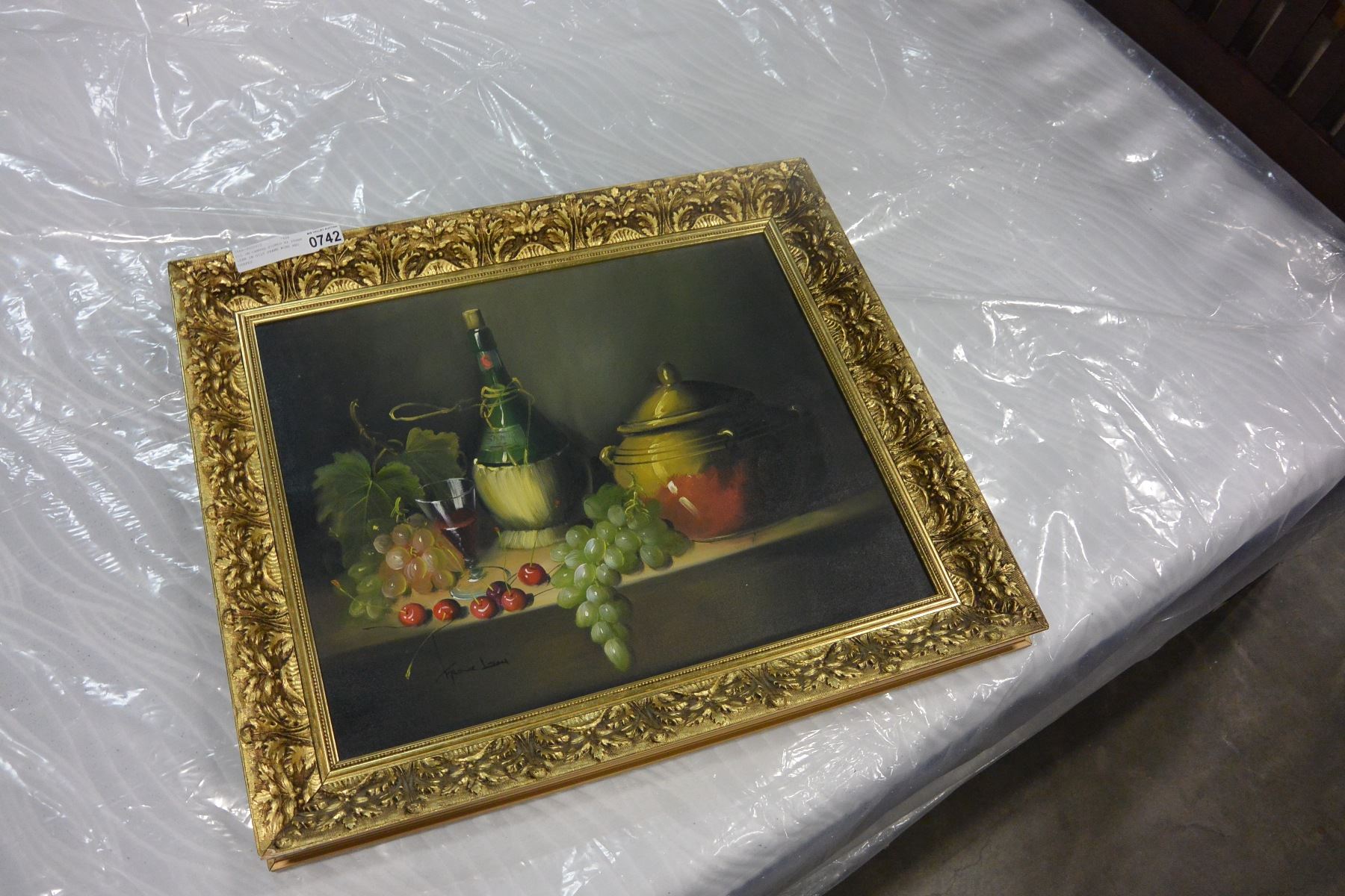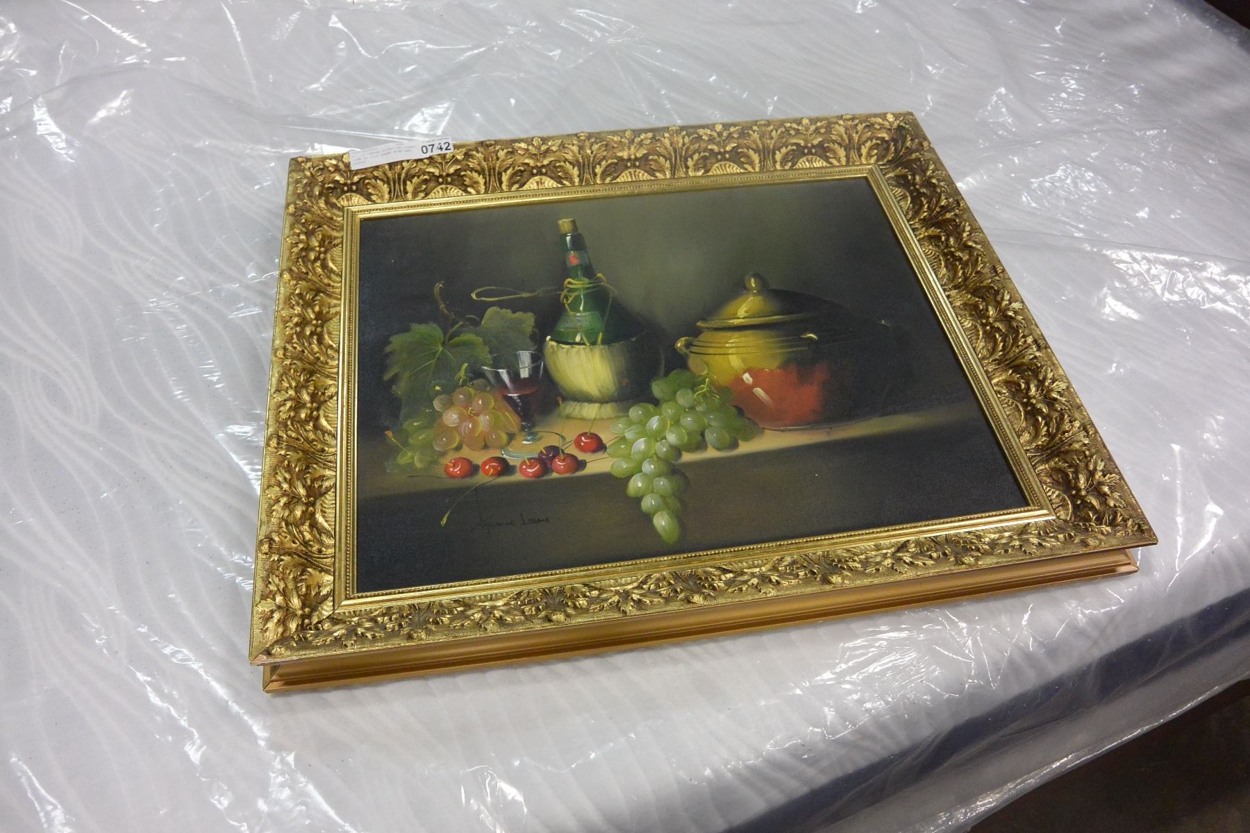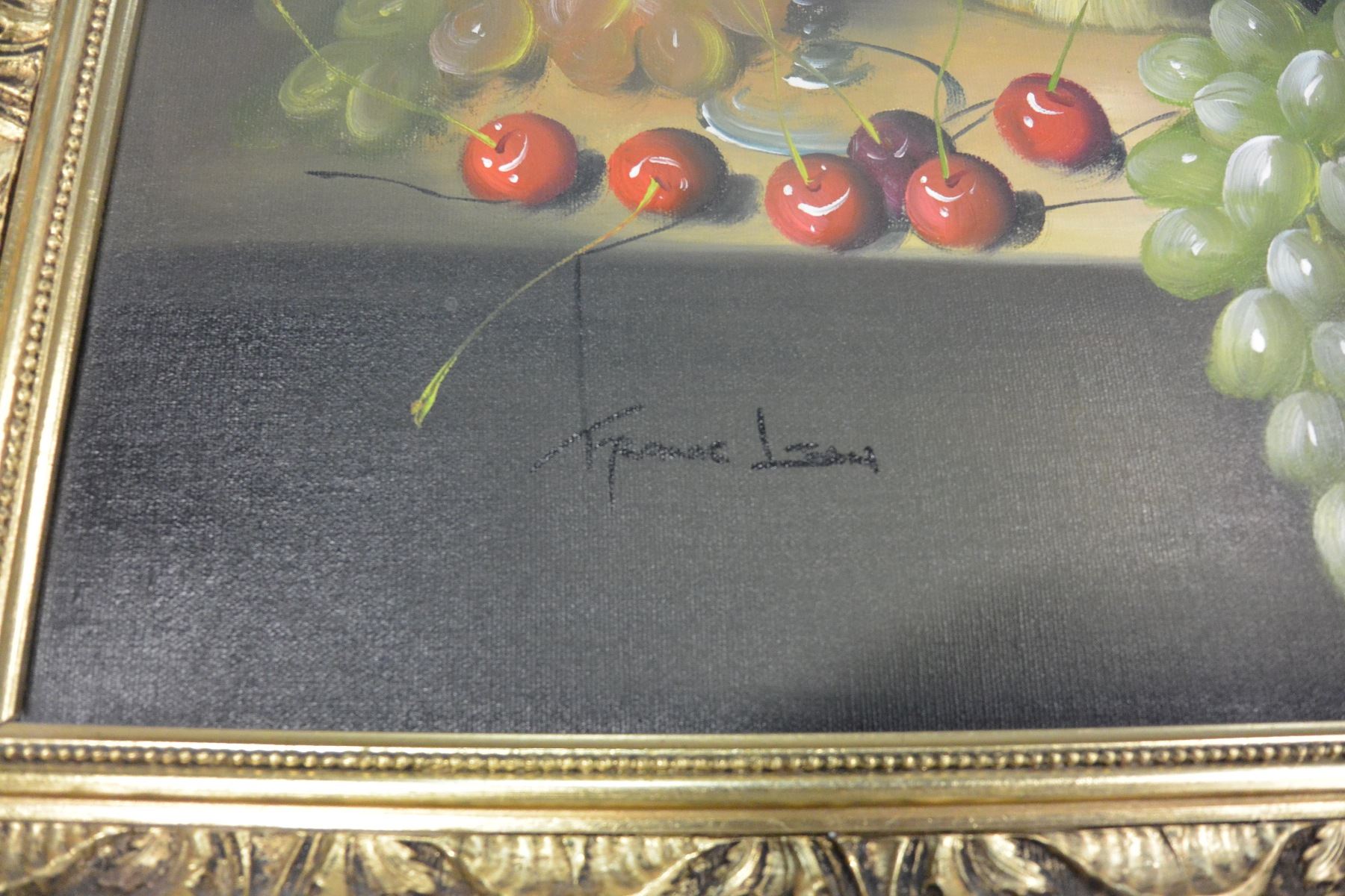 OIL ON CANVAS SIGNED BY FRANK LEAN IN GILT FRAME WINE AND GRAPES