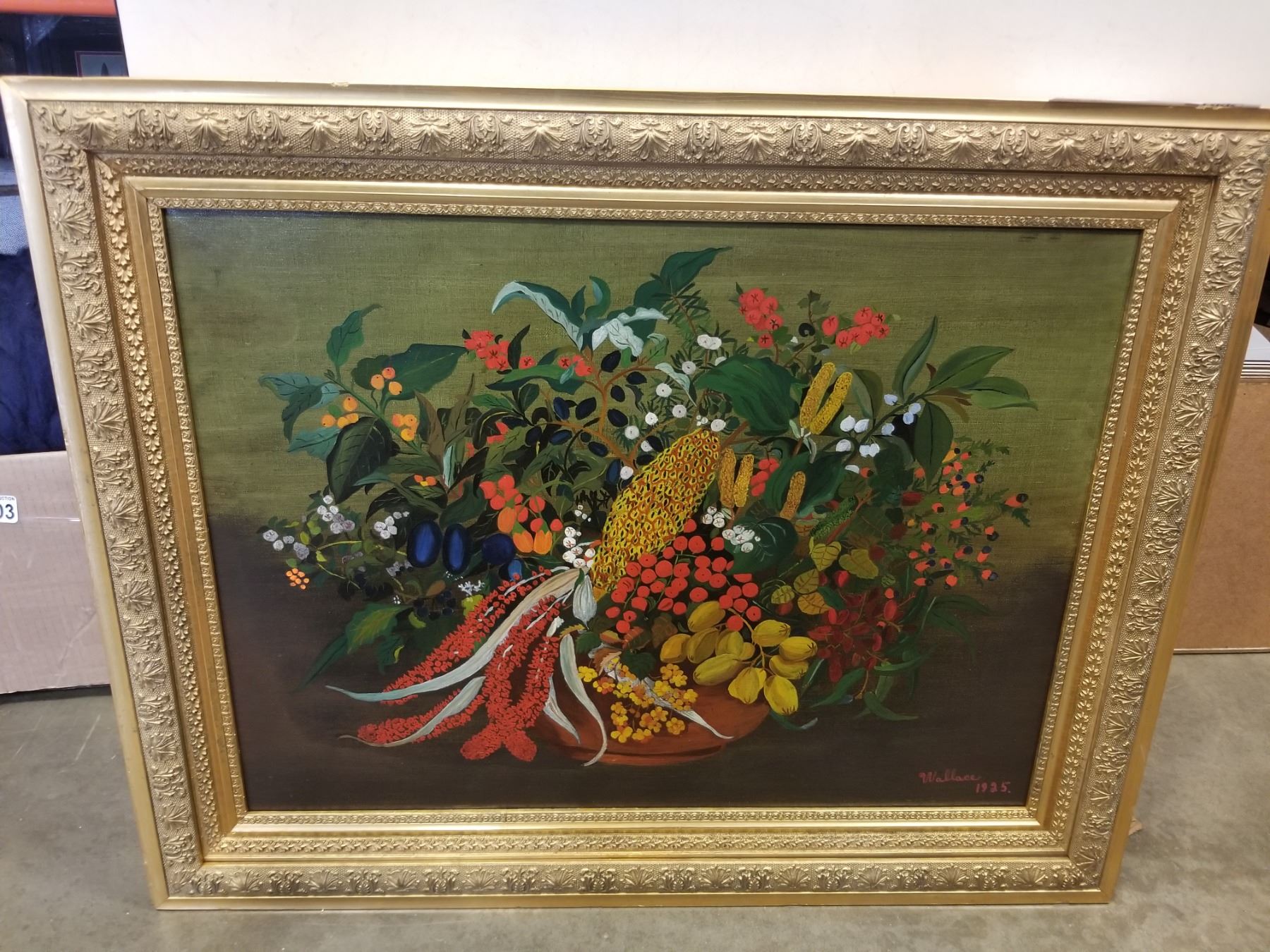 OIL ON CAVAS STILL LIFE WITH FRUITS IN A BOWL SIGNED WALLACE 1925