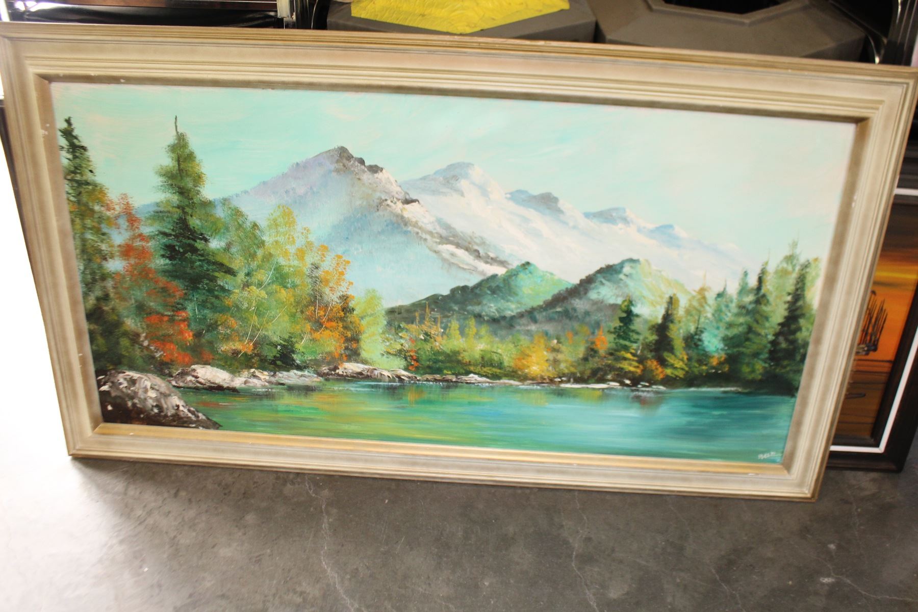 OIL PAINTING ON CANVAS IN FRAME MOUNTAIN SCENE