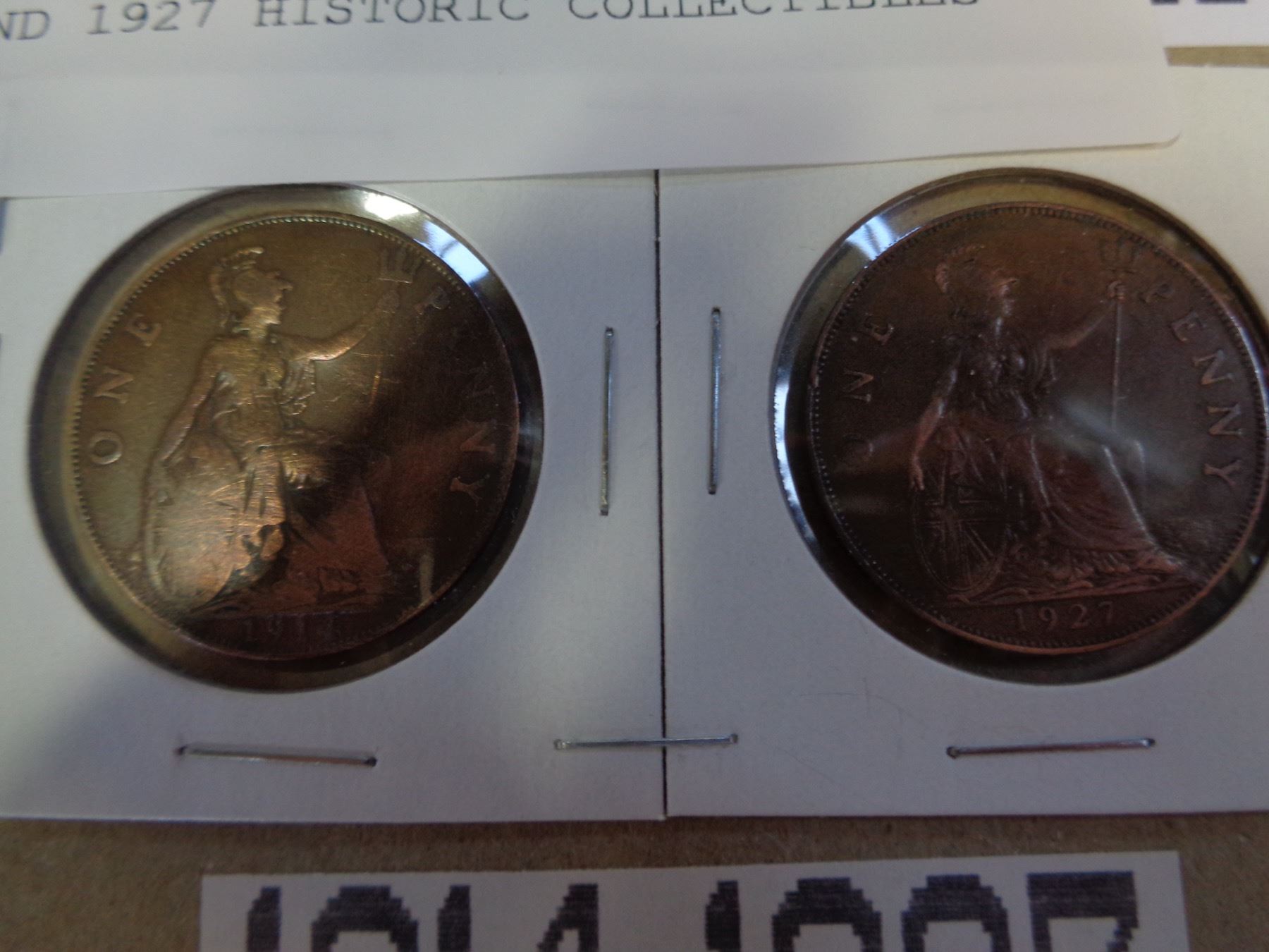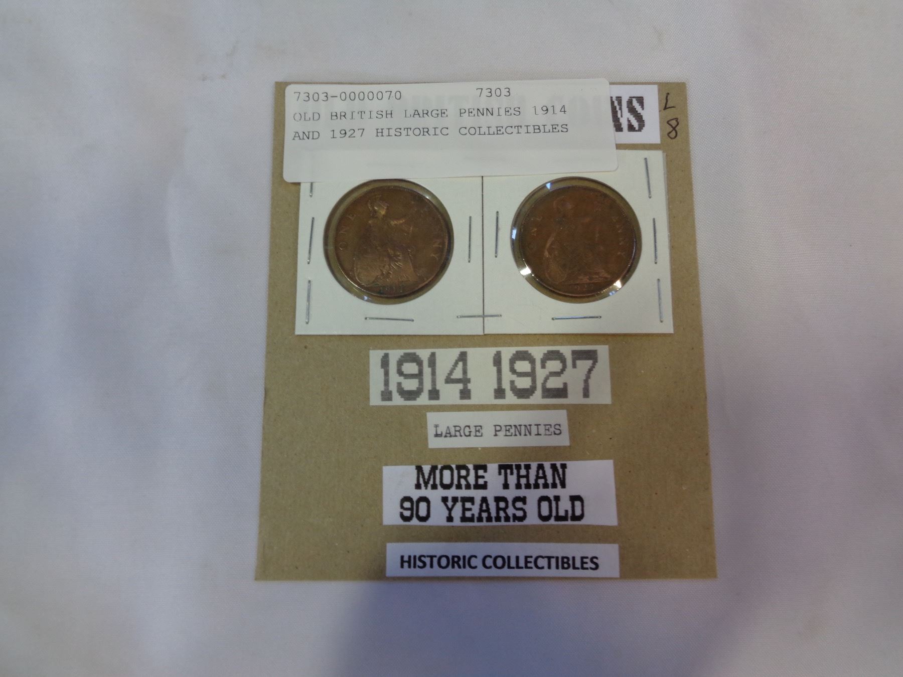 OLD BRITISH LARGE PENNIES 1914 AND 1927 HISTORIC COLLECTIBLES