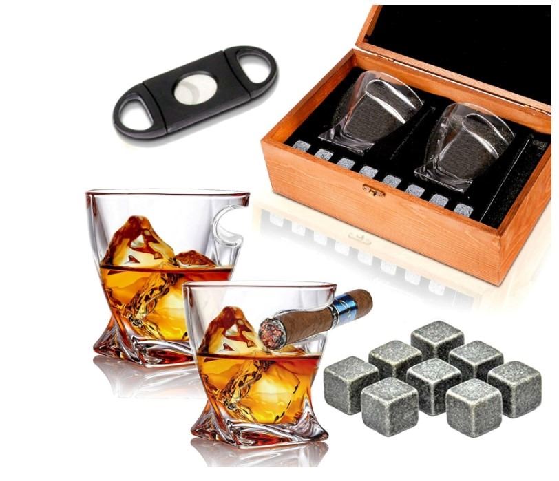 OLD FASHIONED WHISKEY GLASS BOX SET W/ CHILLING STONES AND ACCESSORIES - RETAIL $45