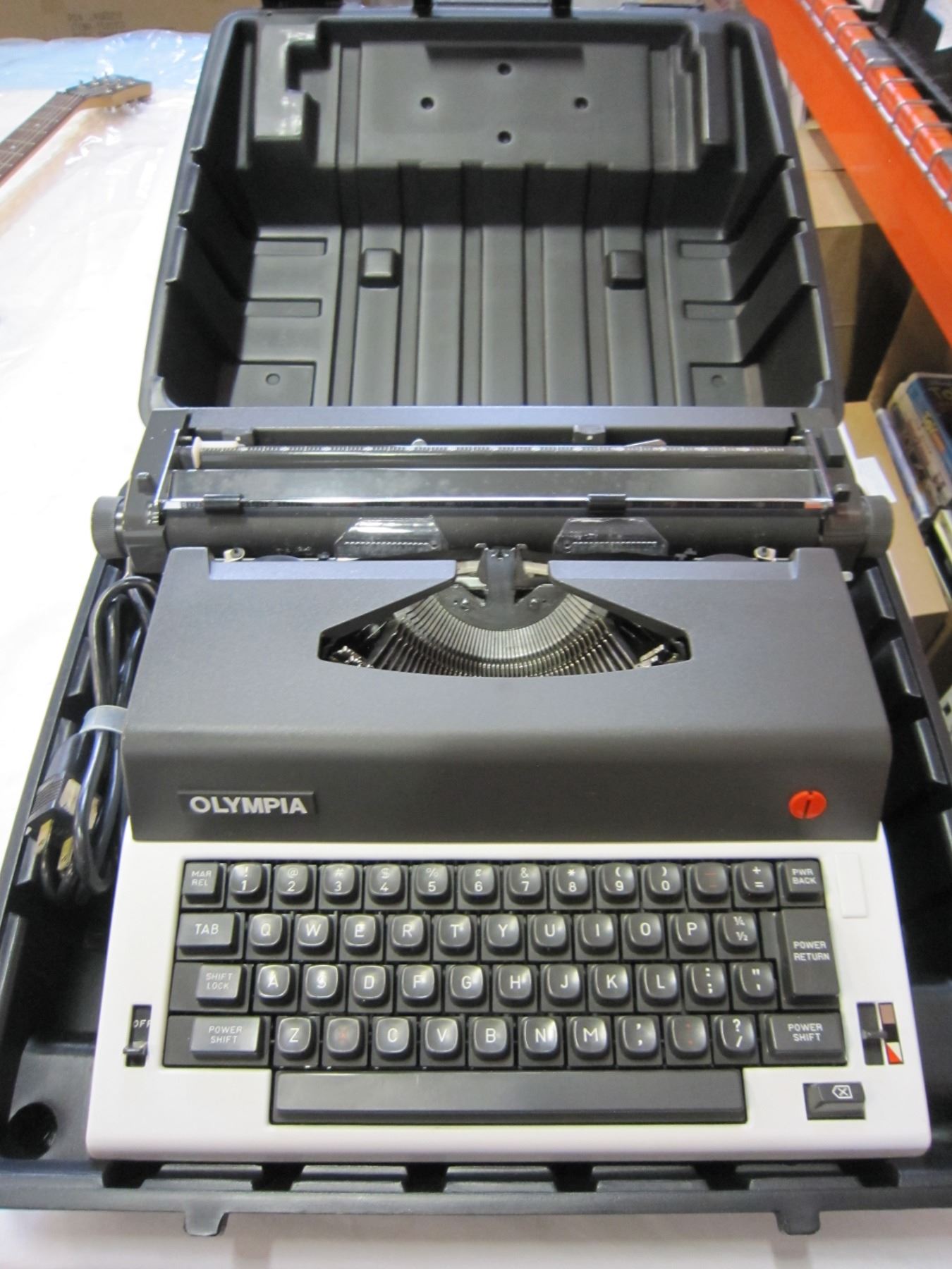 OLYMPIA BLACK AND WHITE TYPEWRITTER IN BLACK CASE