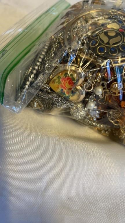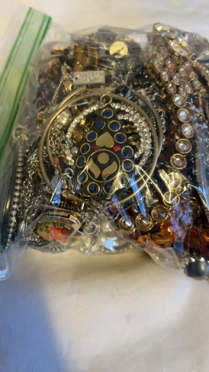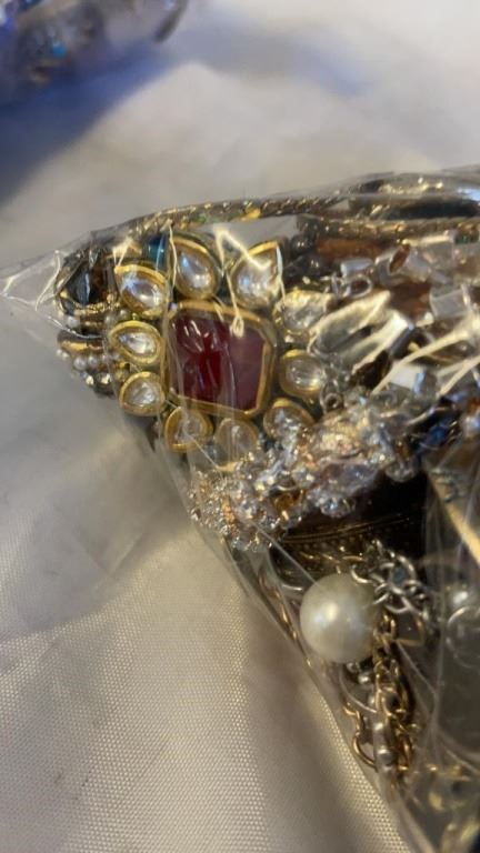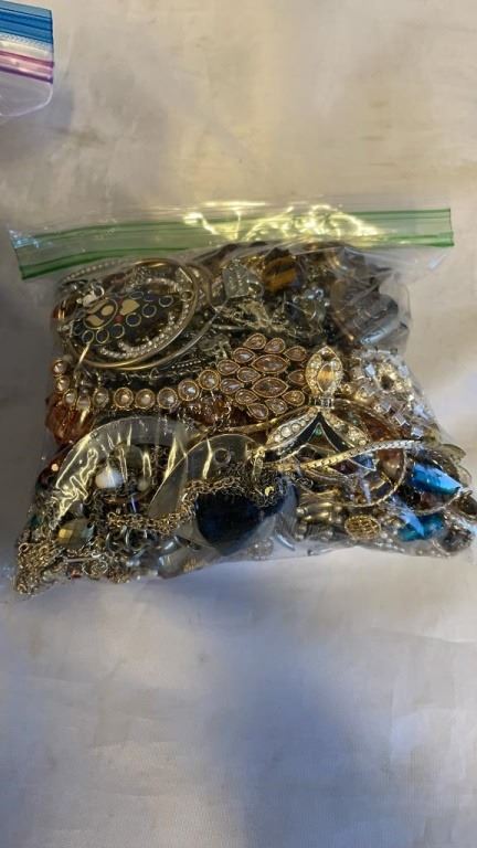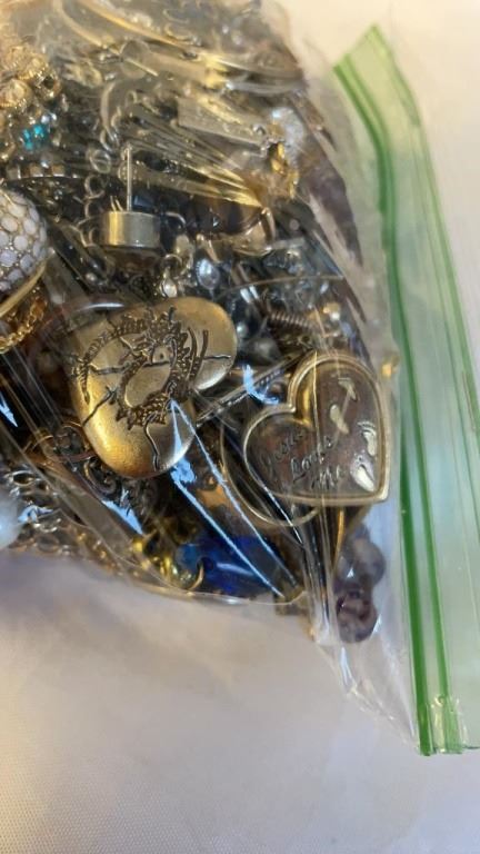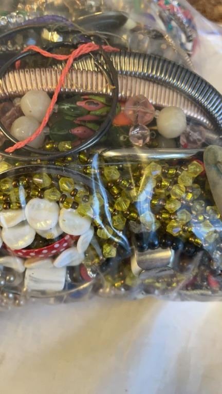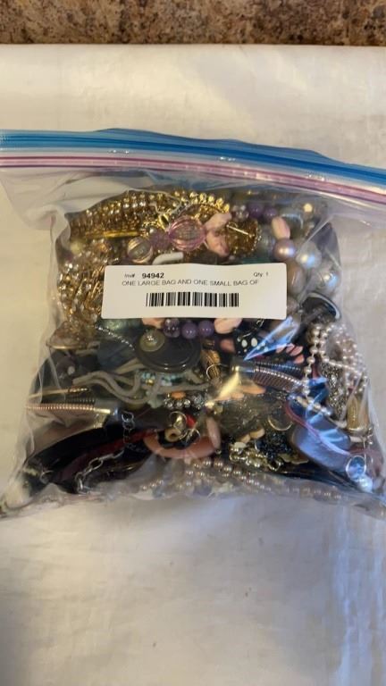 ONE LARGE BAG AND ONE SMALL BAG OF JEWLERY, BROKEN JEWLERY, PARTS, BEADS