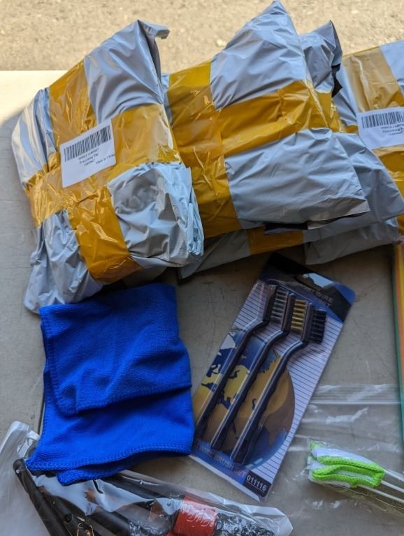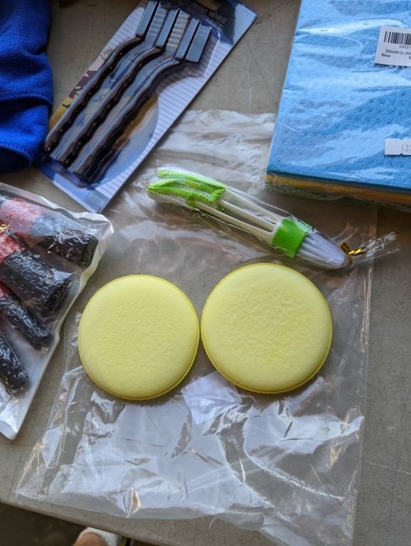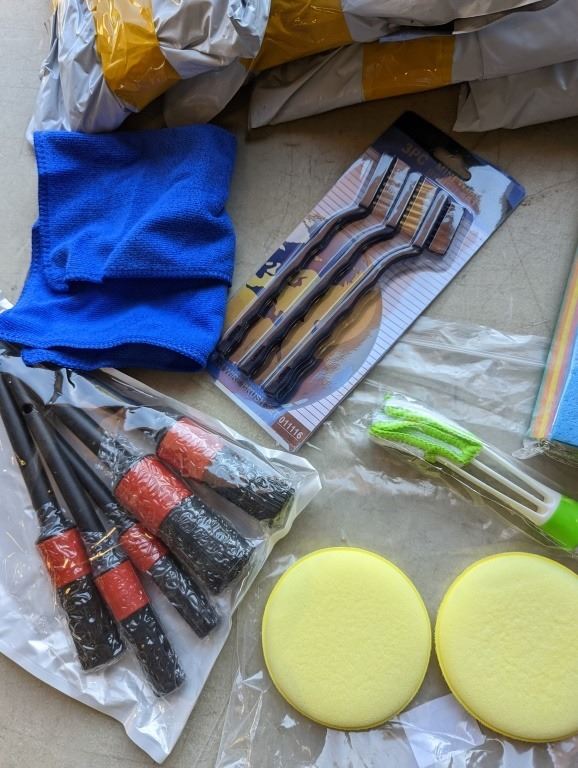 ONE PACK OF ABSORBANT DISHCLOTHS WITH 5 NEW CLEANING SETS: INCLUDE WIRE BRUSHES, 5 ROUND BRUSHES, 2 PADS AND CLEANING TOOL