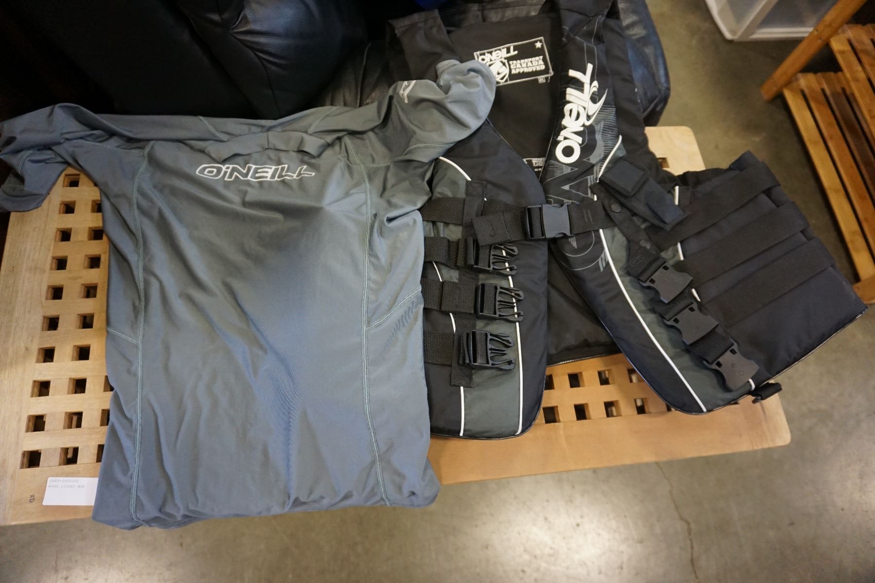 ONEIL LIFE JACKET 2XL AND ONIEL T SHIRT