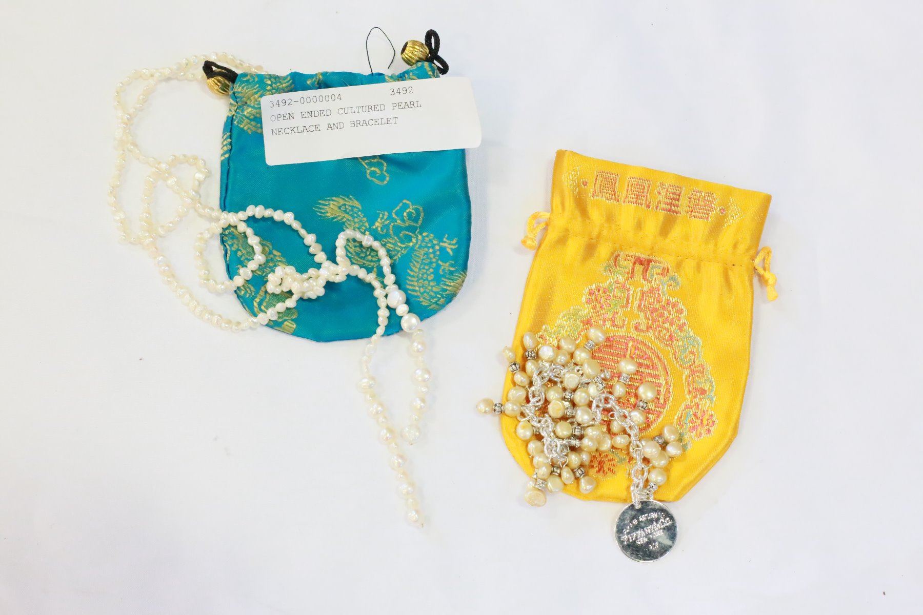 OPEN ENDED CULTURED PEARL NECKLACE AND BRACELET
