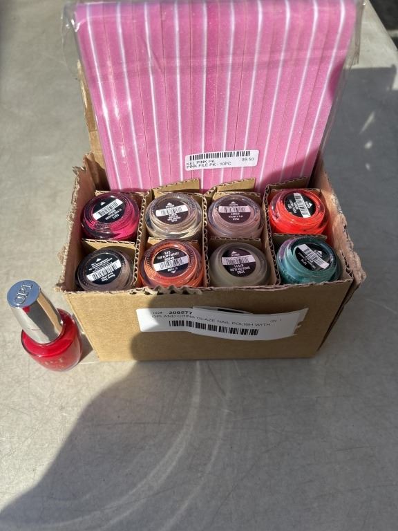 OPI AND CHINA GLAZE NAIL POLISH WITH CASE OF PINK FILES