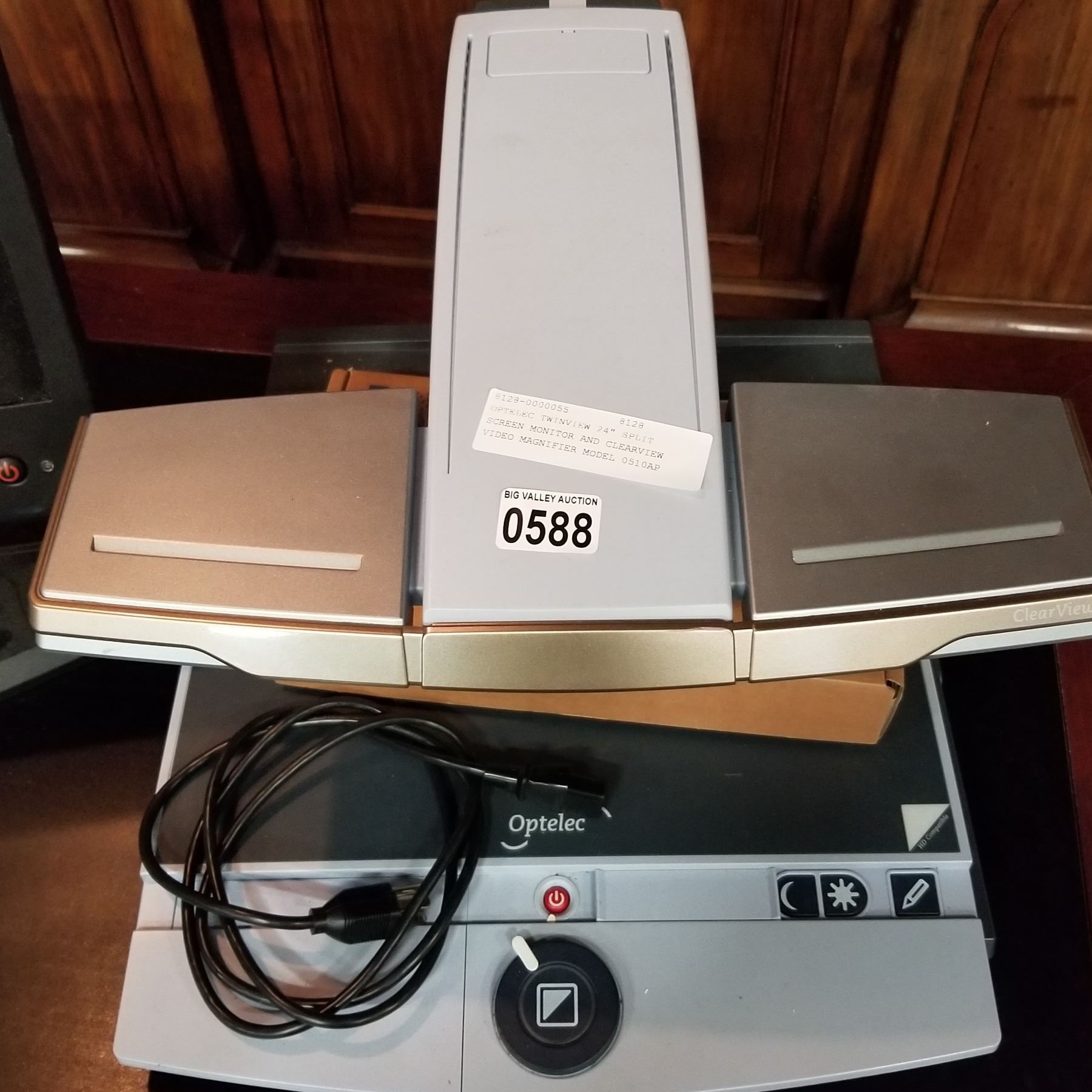 OPTELEC TWINVIEW 24" SPLIT SCREEN MONITOR AND CLEARVIEW VIDEO MAGNIFIER MODEL 0510AP COMPLETE W/ CORDS