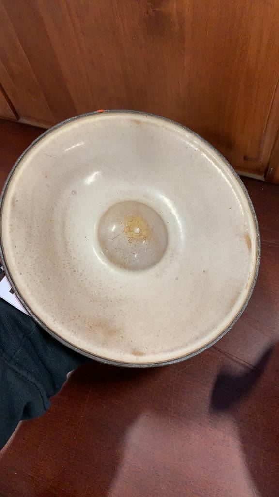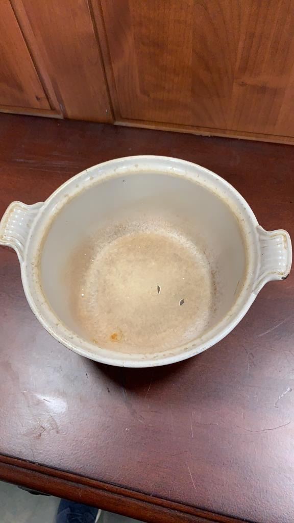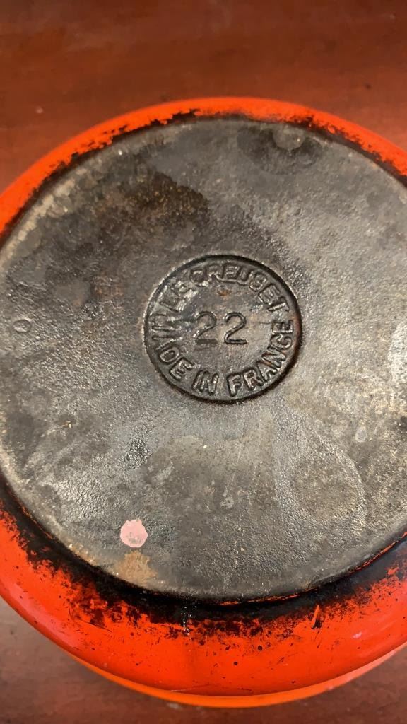ORANGE CAST IRON CREUSET LIDDED DISH