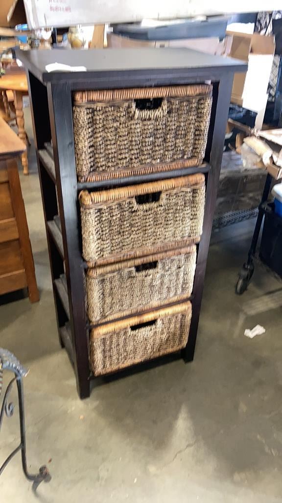 ORGANIZER SHELF WITH 4 WICKER BSKET DRAWERS