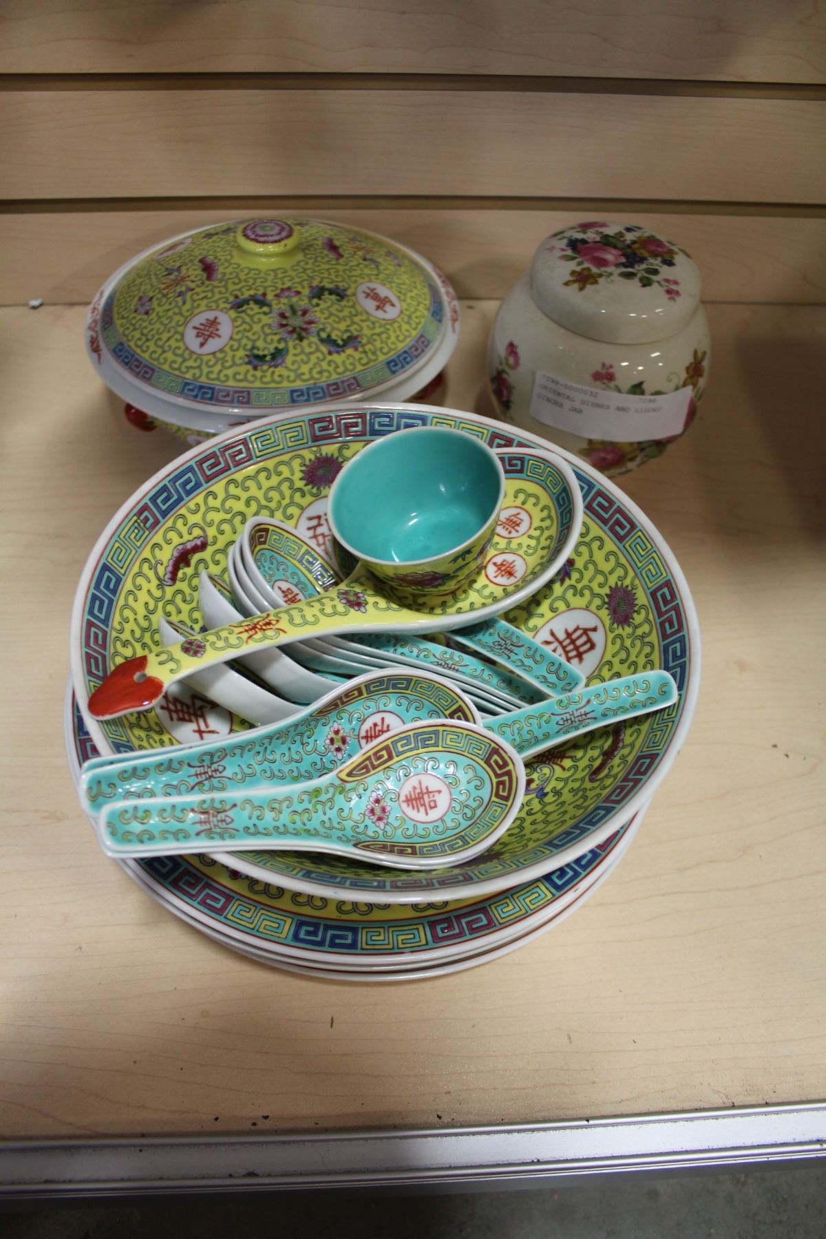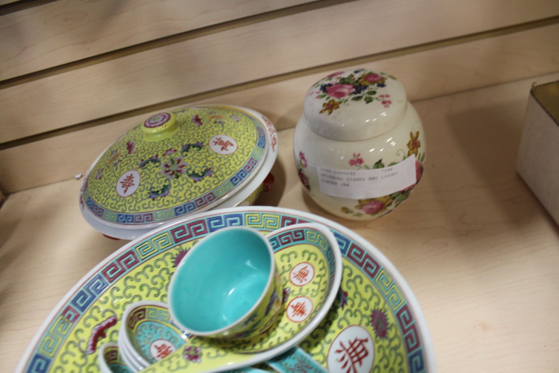 ORIENTAL DISHES AND LIDDED GINGER JAR
