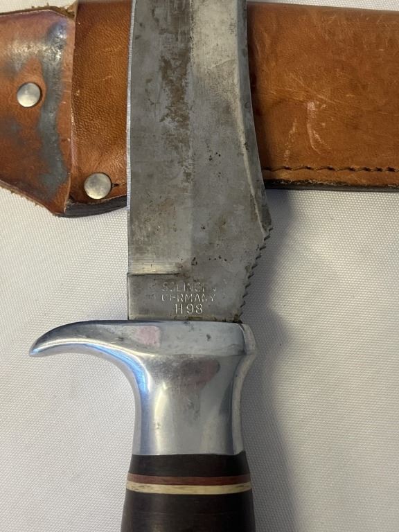 ORIGINAL BUFFALO SKINNER KNIFE SOLINGEN GERMANY, H98 WITH EMBOSSED SHEATH