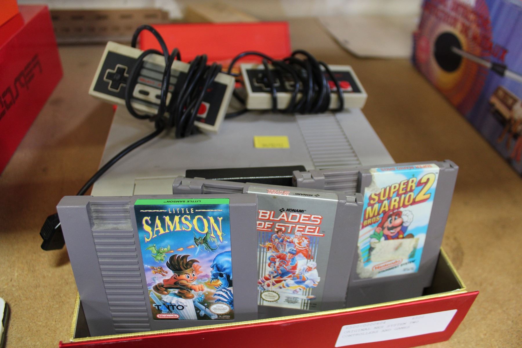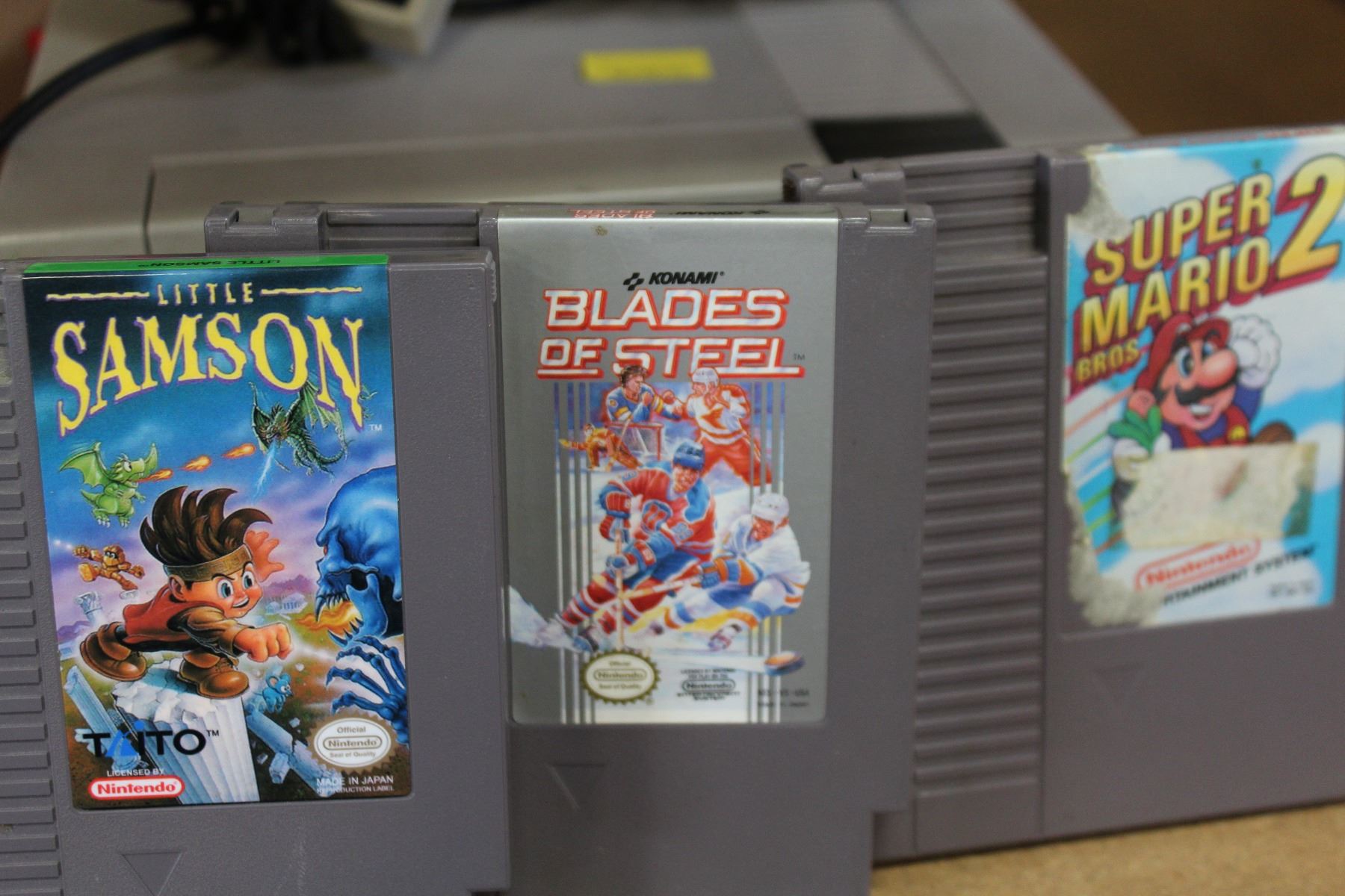 ORIGINAL NES SYSTEM TWO CONTROLLERS AND 3 REPRODUCTION GAMES