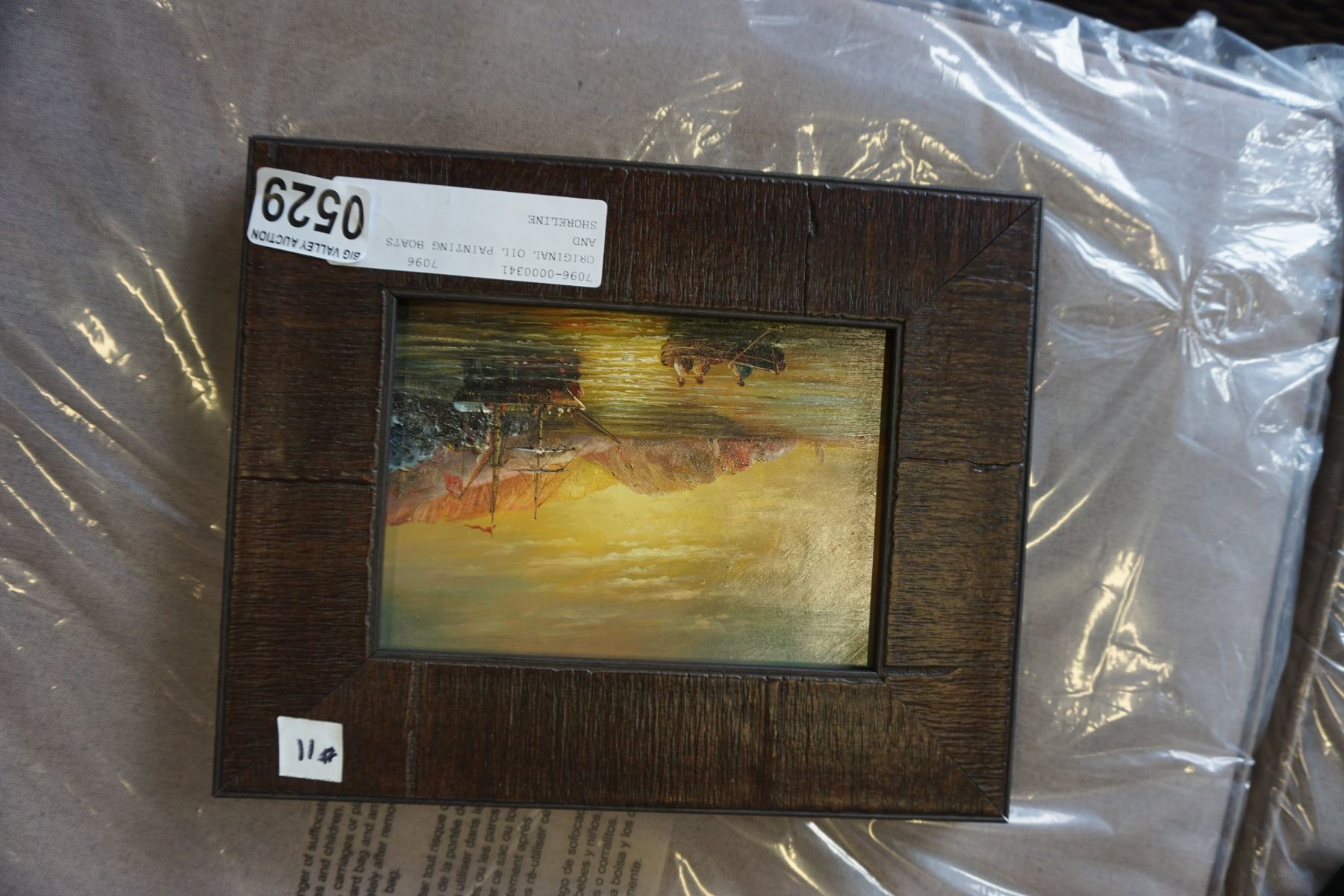 ORIGINAL OIL PAINTING BOATS AND SHORELINE