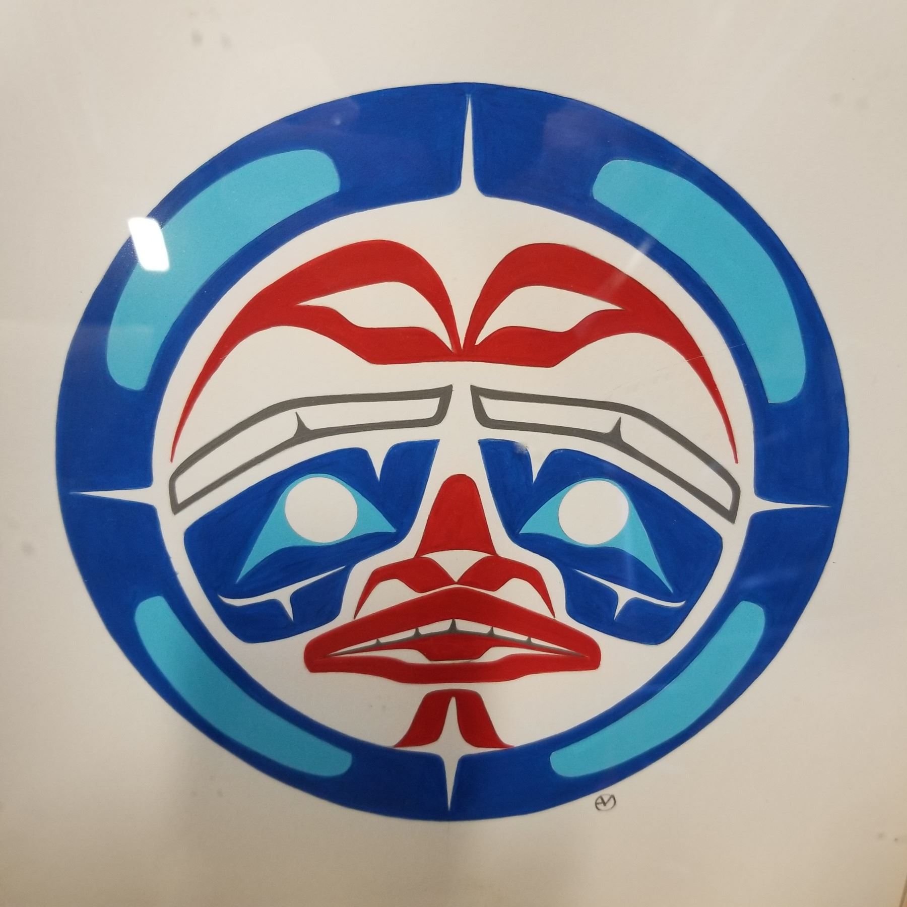 ORIGINAL SIGNED PAINTED NATIVE SUN MASK PAINTING IN METAL FRAME