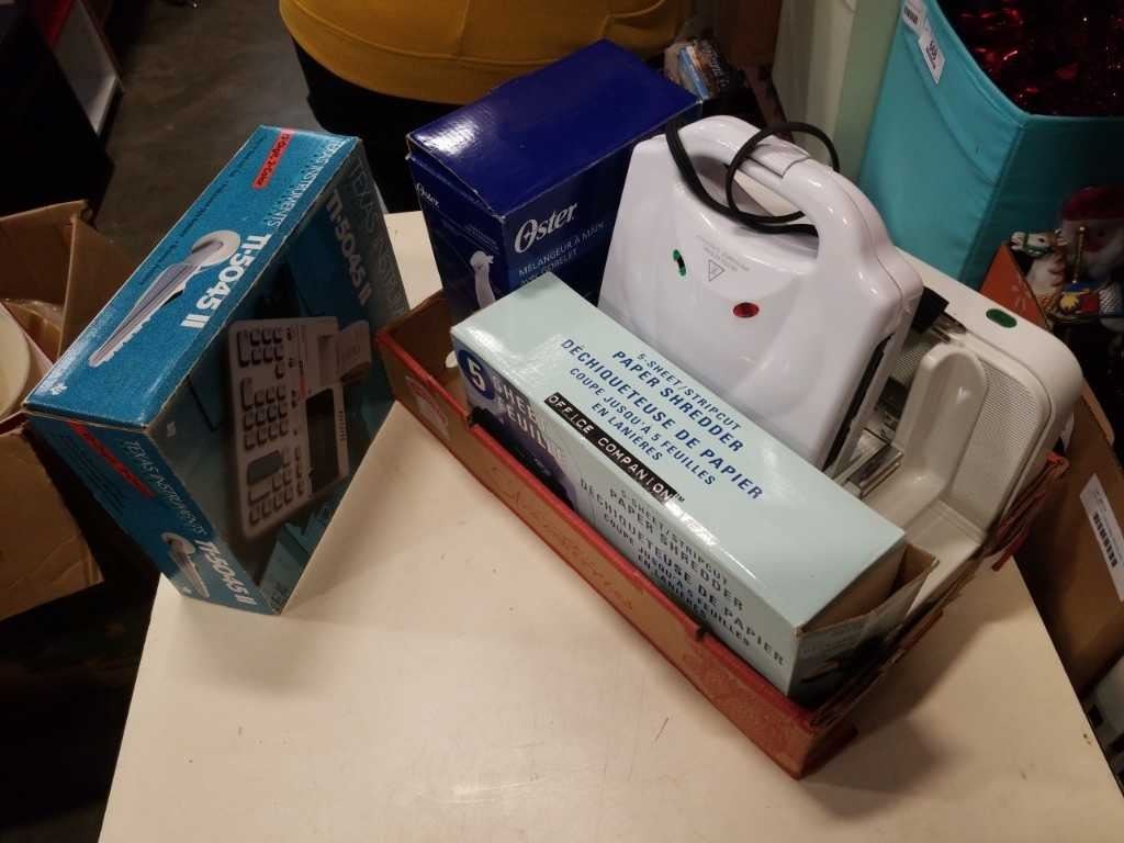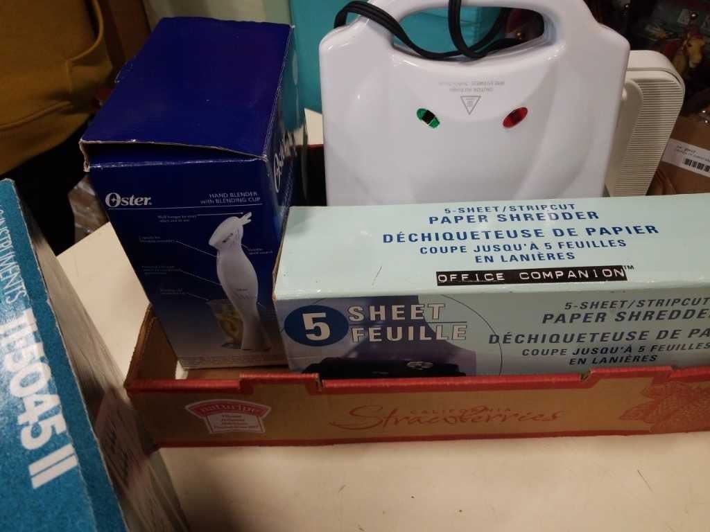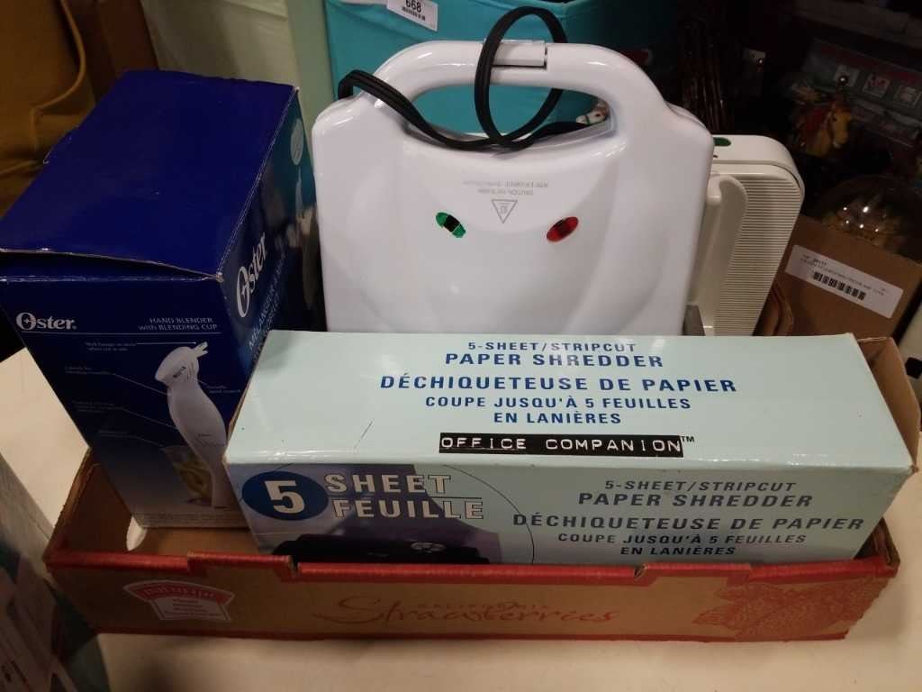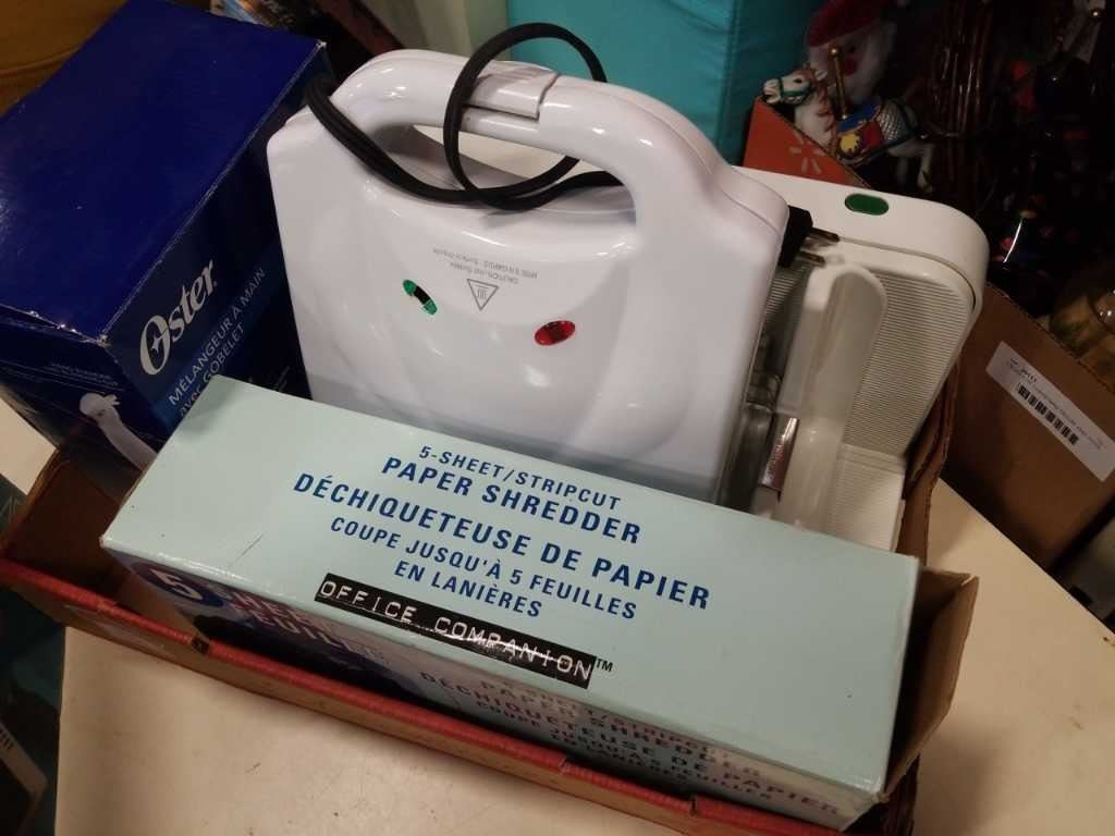 OSTER HAND BLENDER, SLICER, WAFFLE IRON, PAPER SHREDDER AND TEXAS INSTRUMENTS TI-5045II