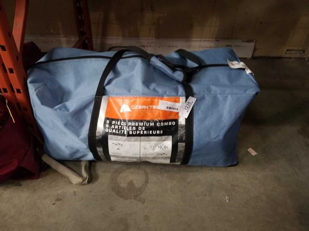 OZARK TRAIL TENT, 2 SLEEPING BAGS AND COTTON MUMMY WITH HOOD