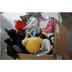 TOTE OF STUFFED ANIMALS AND COLLECTIBLES