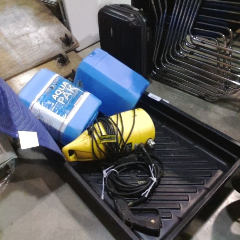 Oil change pan with 1300 psi pressure washer and 2 water jugs