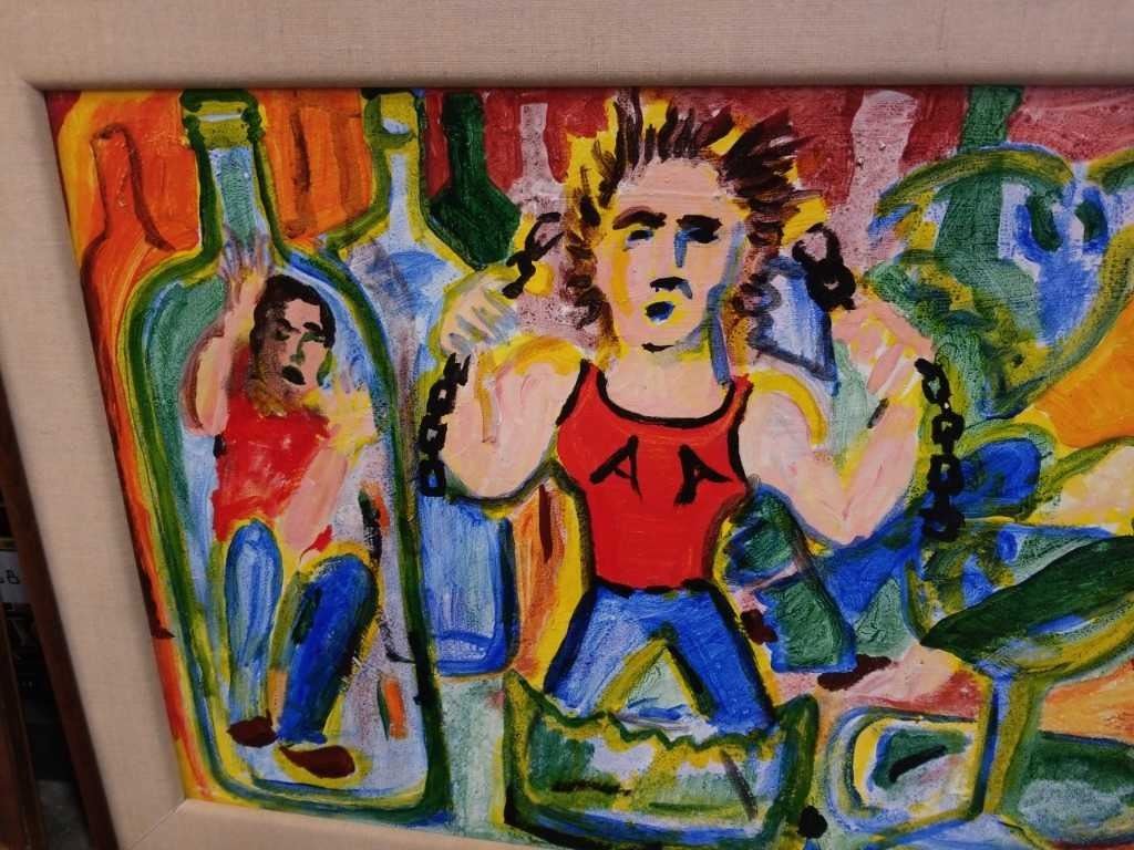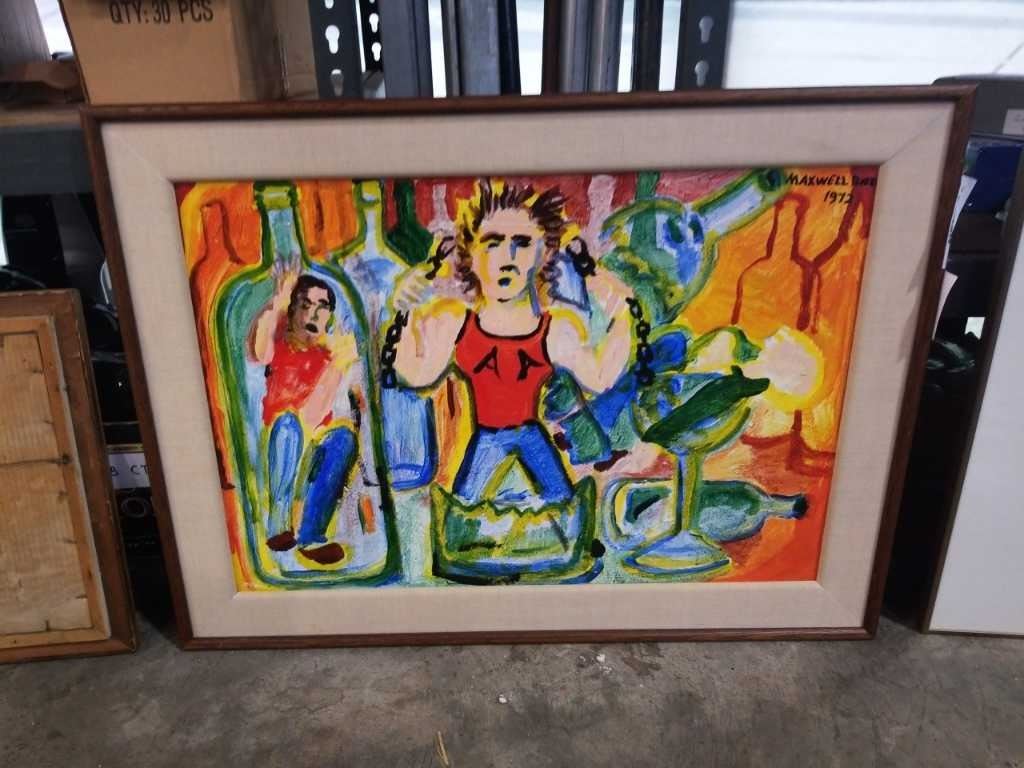 Oil on board "The bottle problem" signed maxwell bates 1972