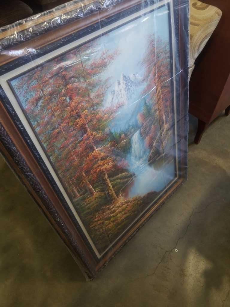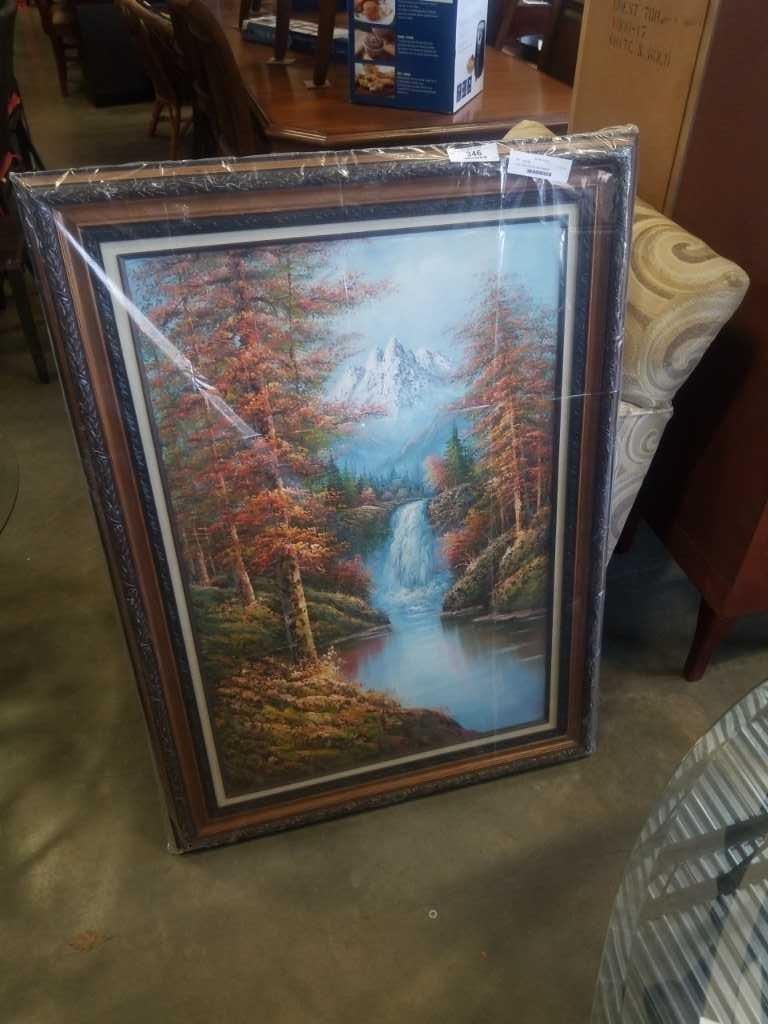 Oil on canvas painting framed waterfall