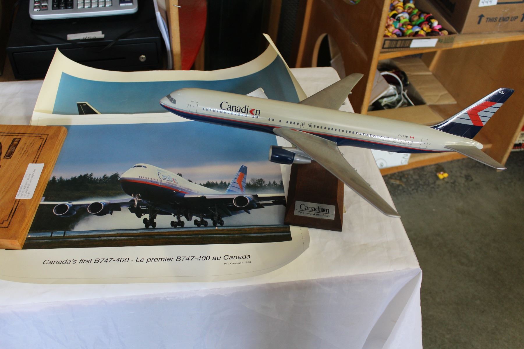 PACIFIC WESTERN CANADIAN AIRLINES MODEL AND PLAQUE AND PRINTS