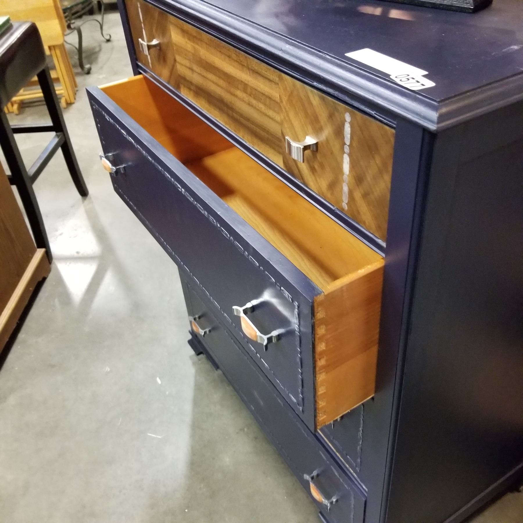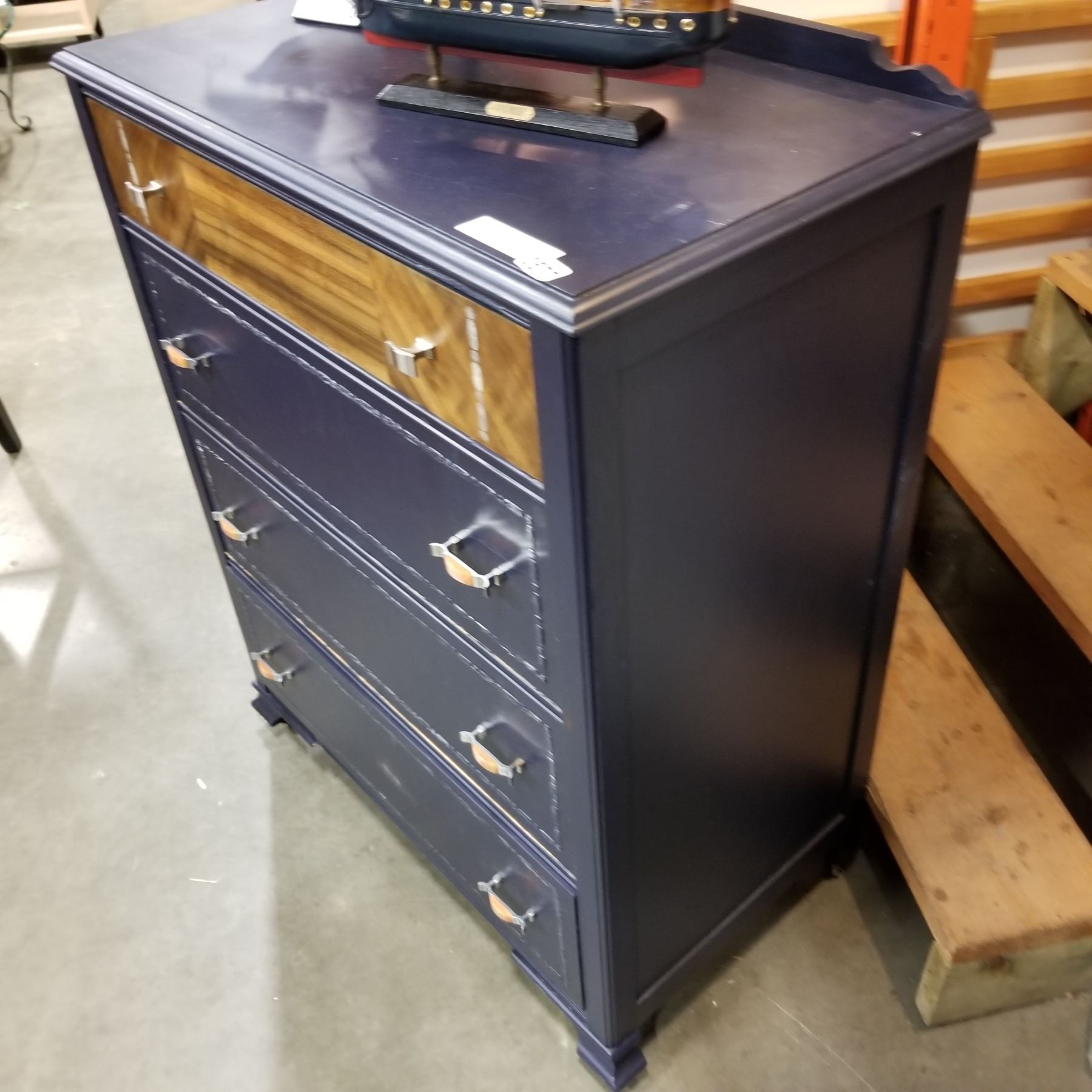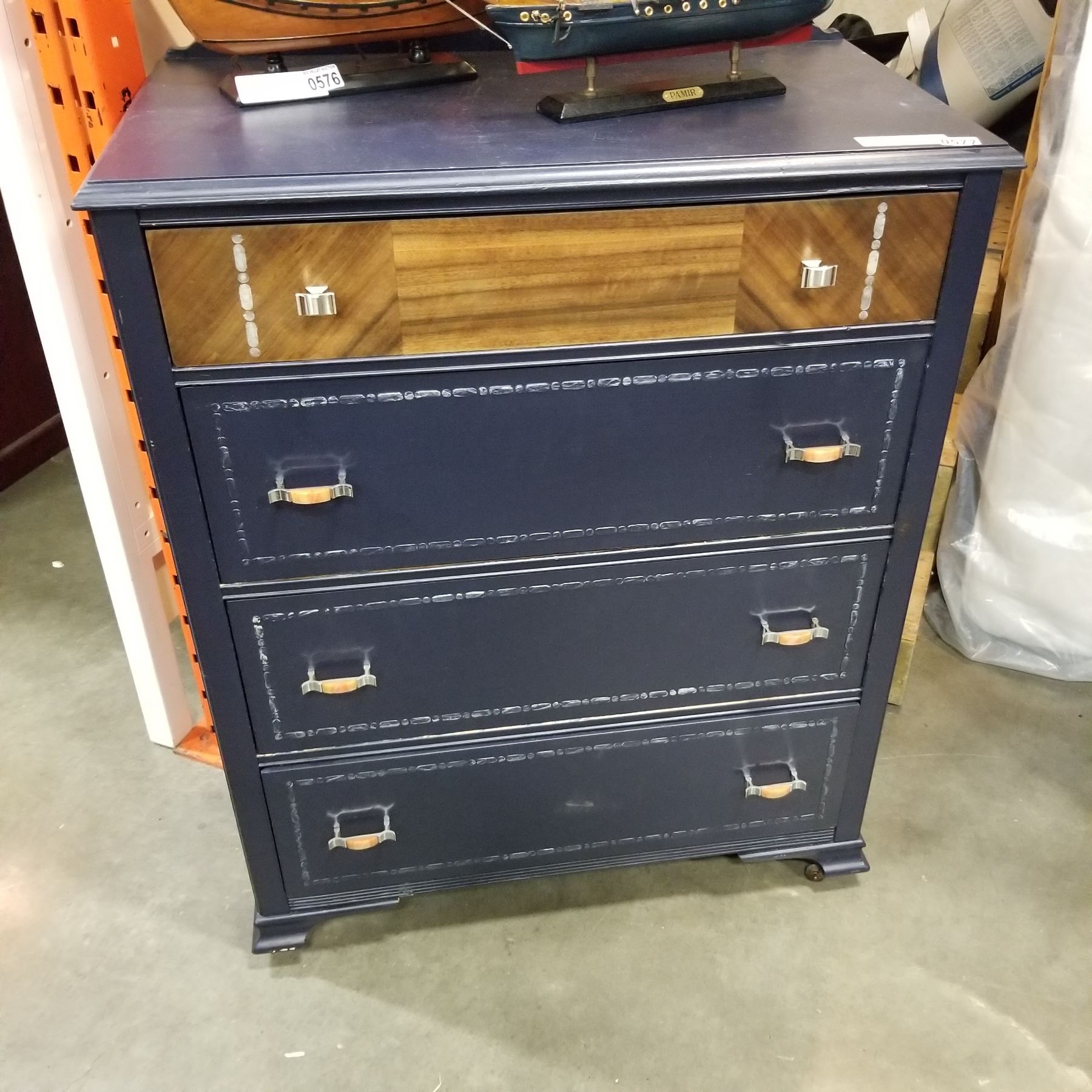PAINTED BLUE VINTAGE 4 DRAWER DRESSER ON WHEELS