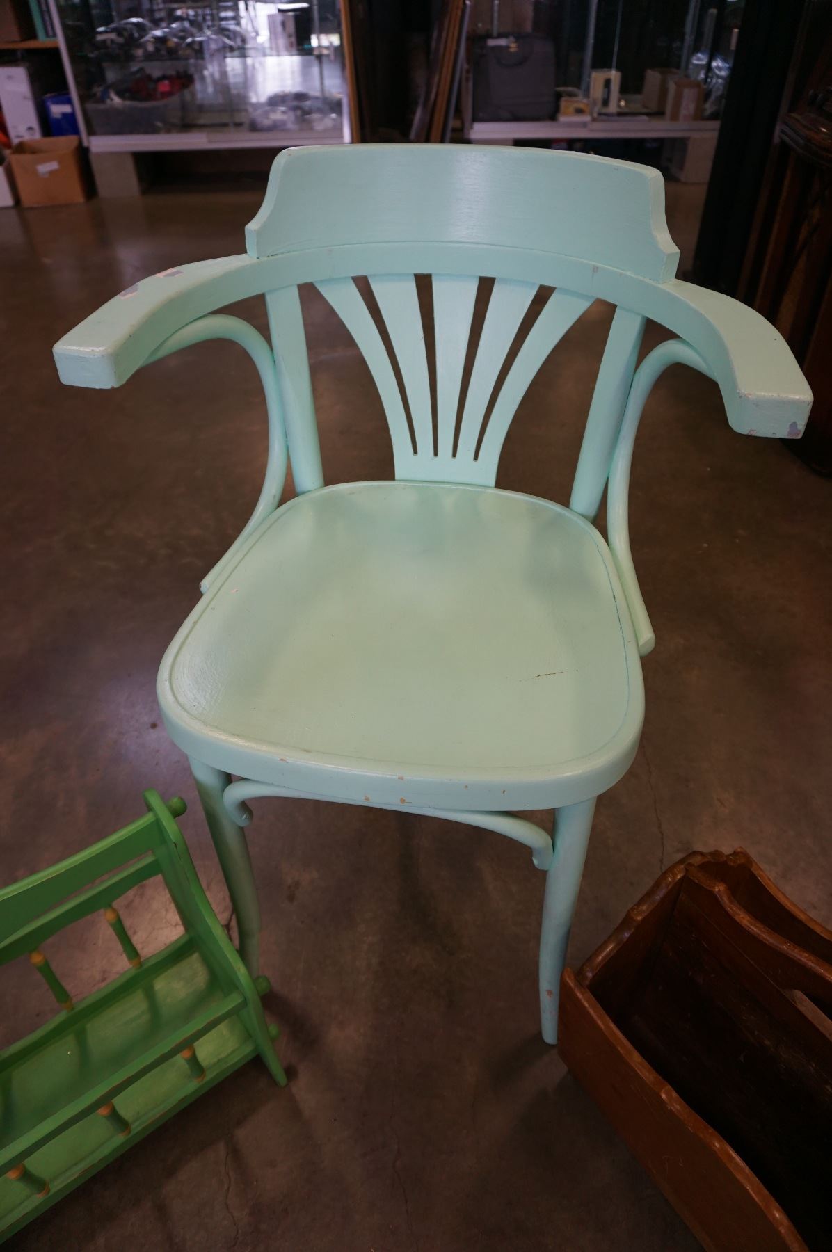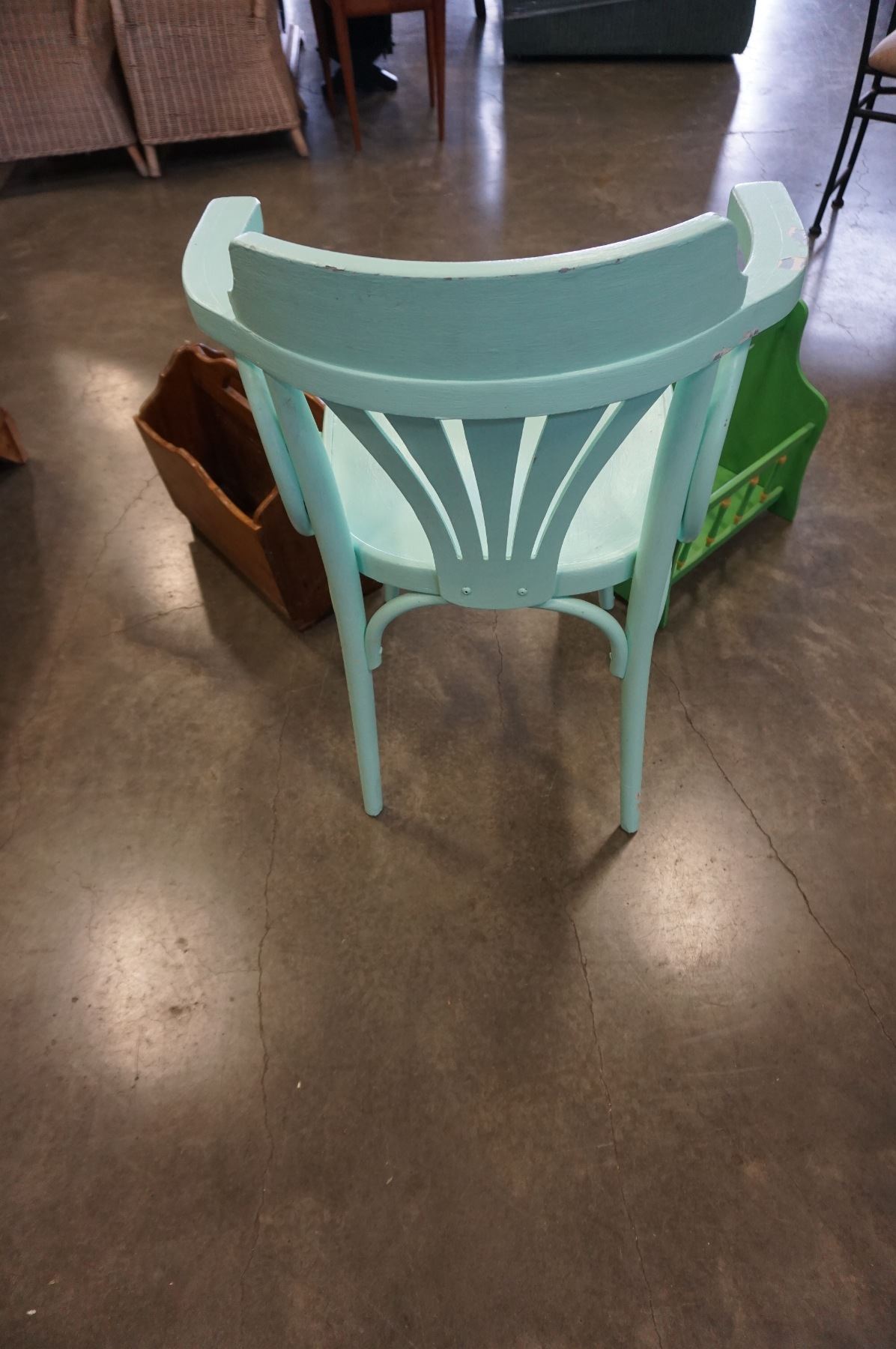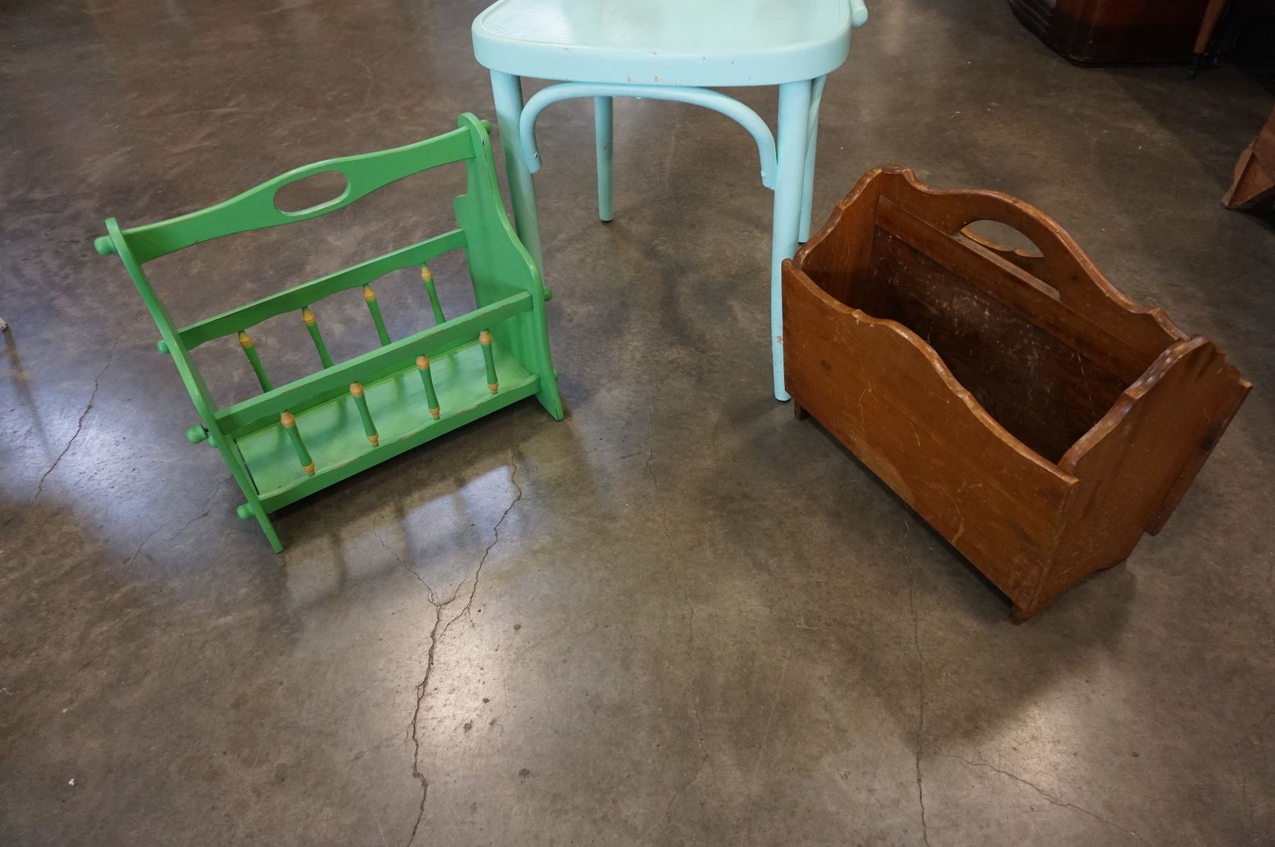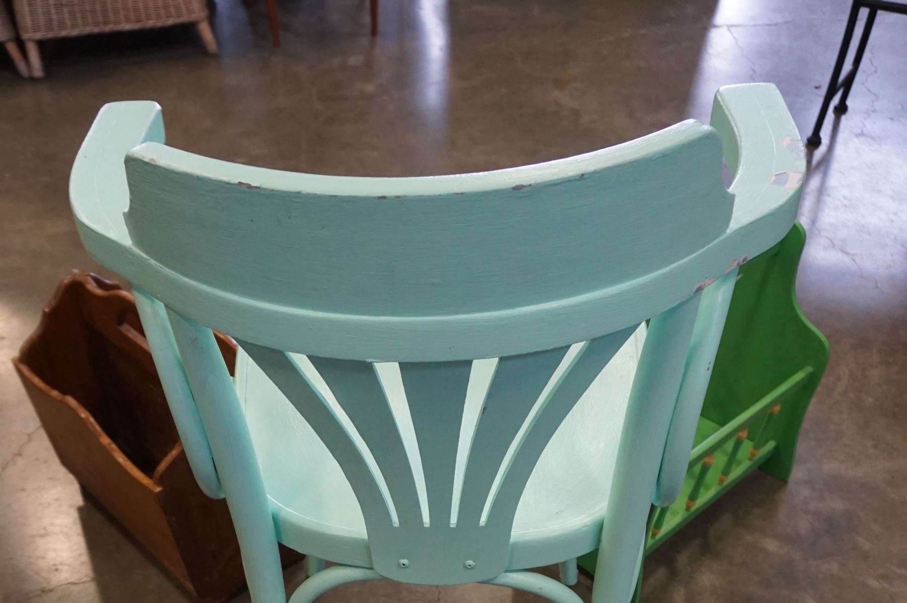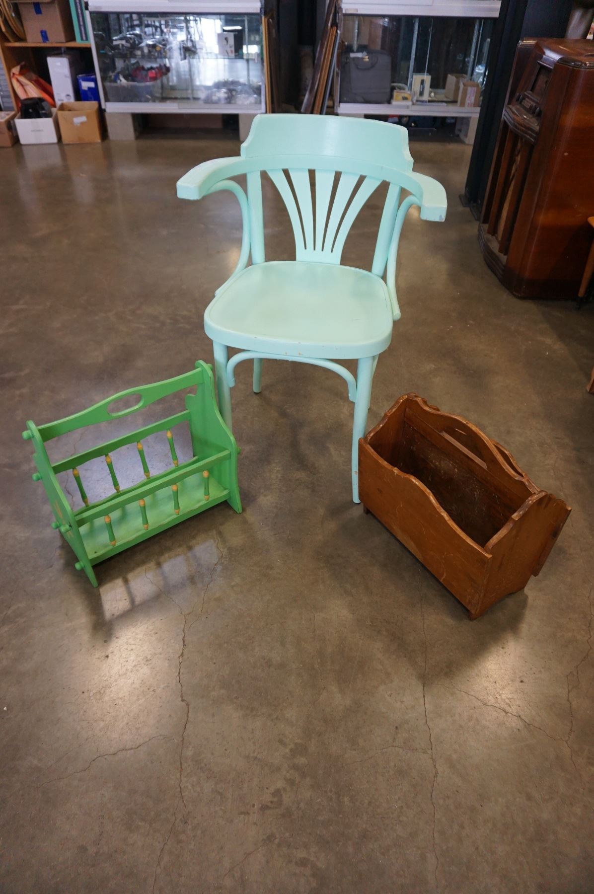 PAINTED CHAIR AND 2 MAGAZINE RACKS