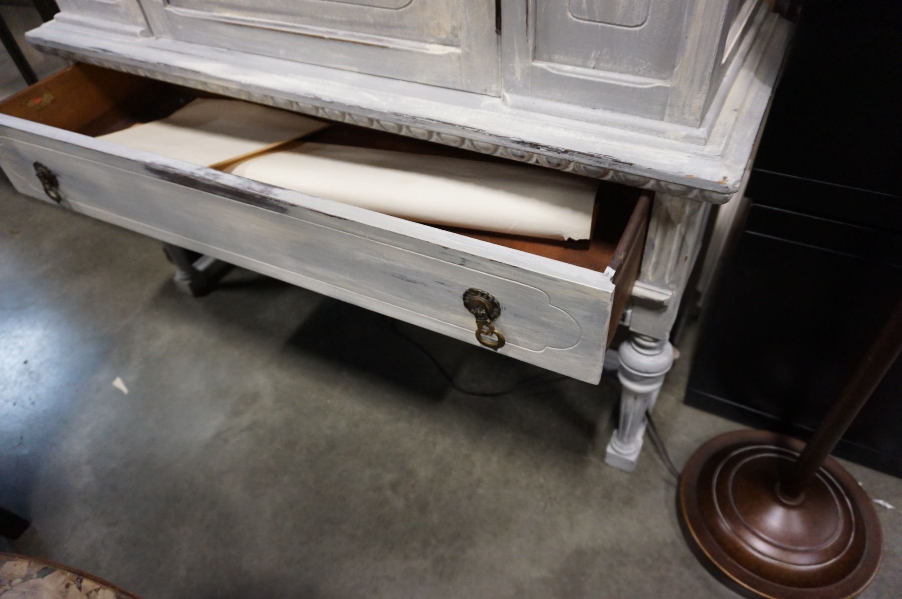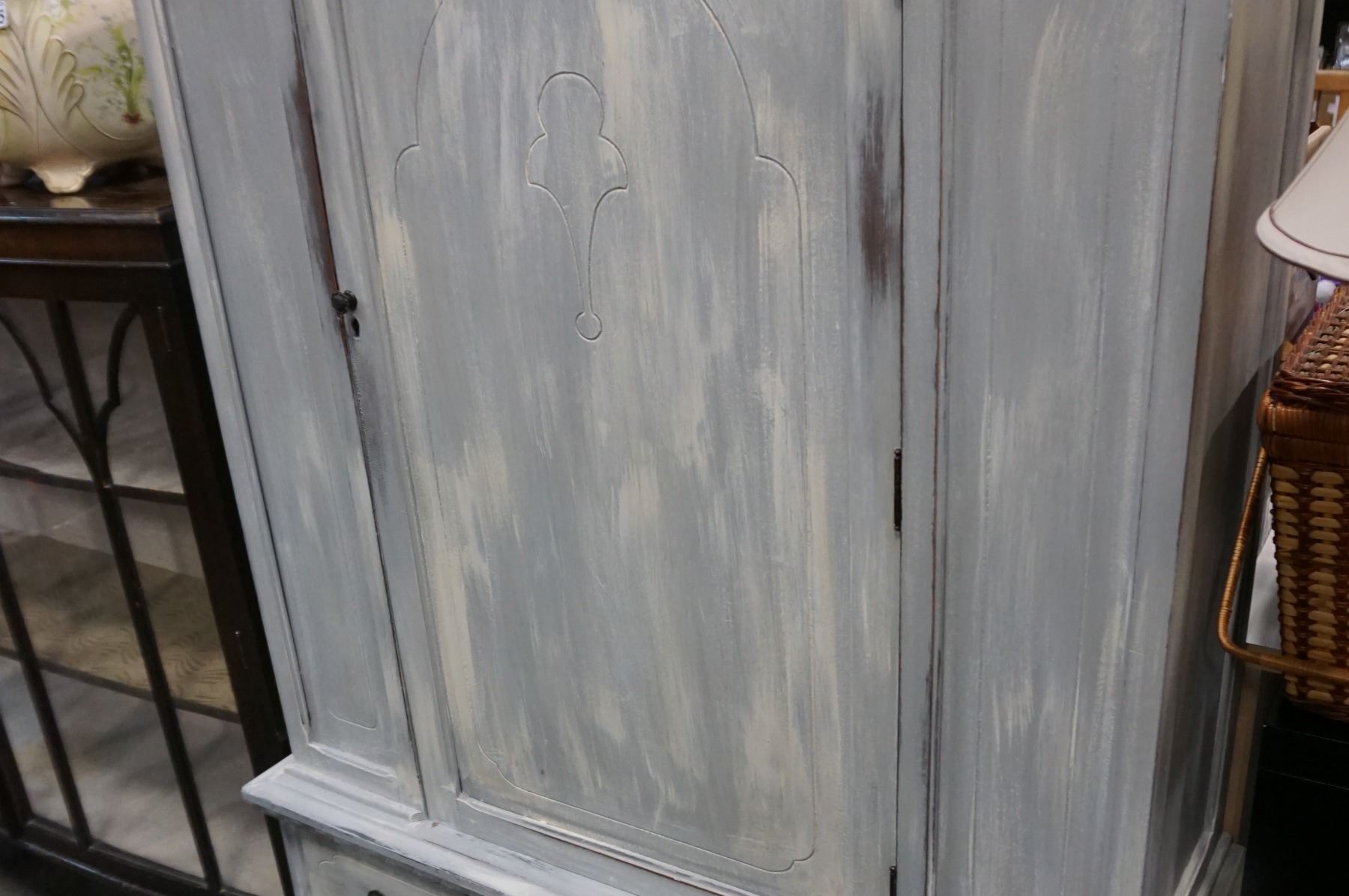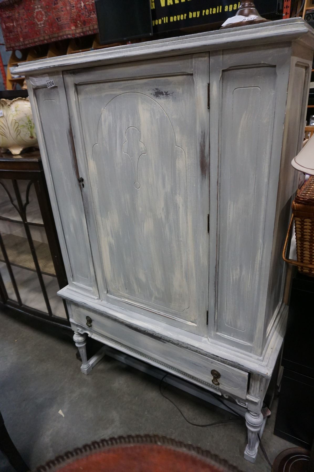 PAINTED GREY ANTIQUE CABINET W/ 1 DRAWER AND DOOR