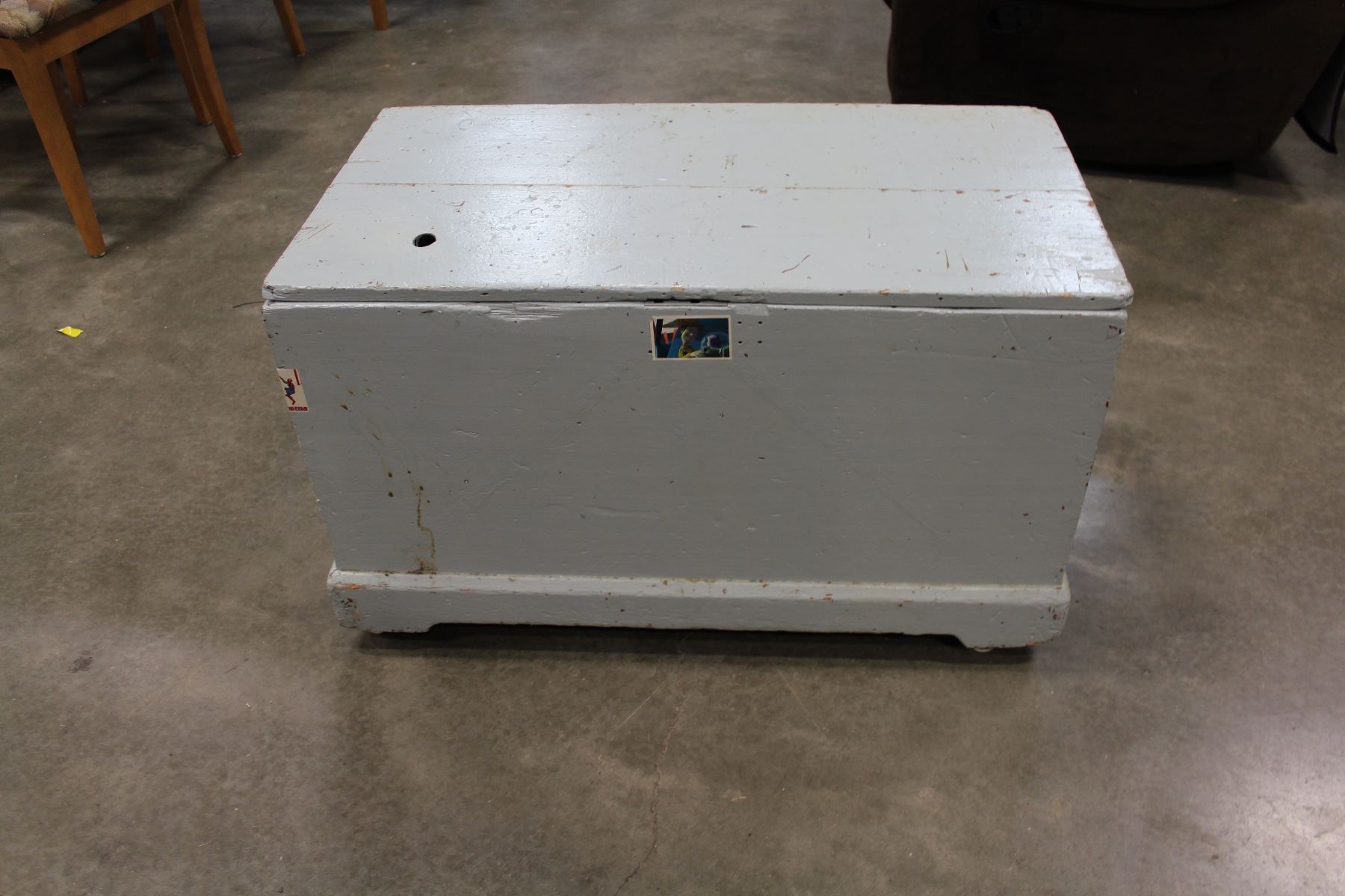 PAINTED STORAGE TRUNK ON WHEELS