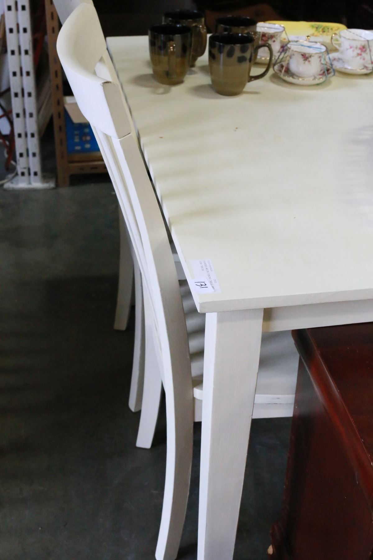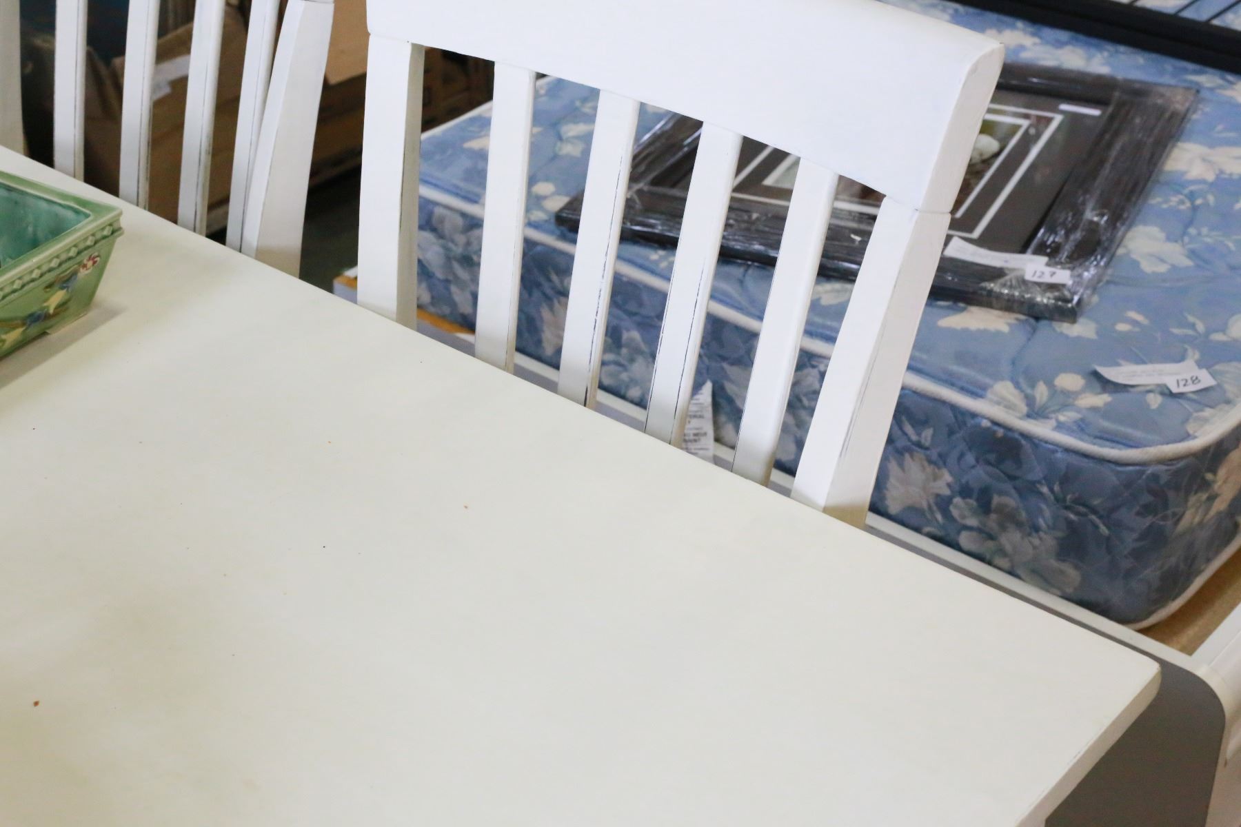 PAINTED WHITE DINING TABLE AND FOUR CHAIRS